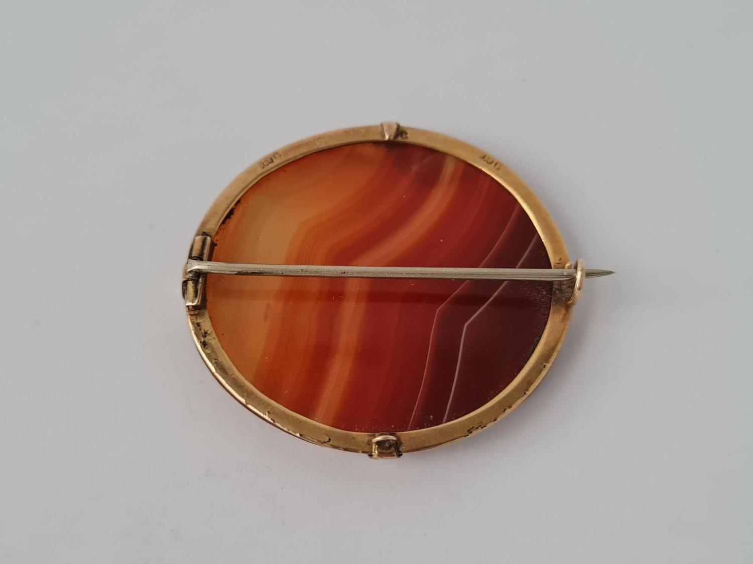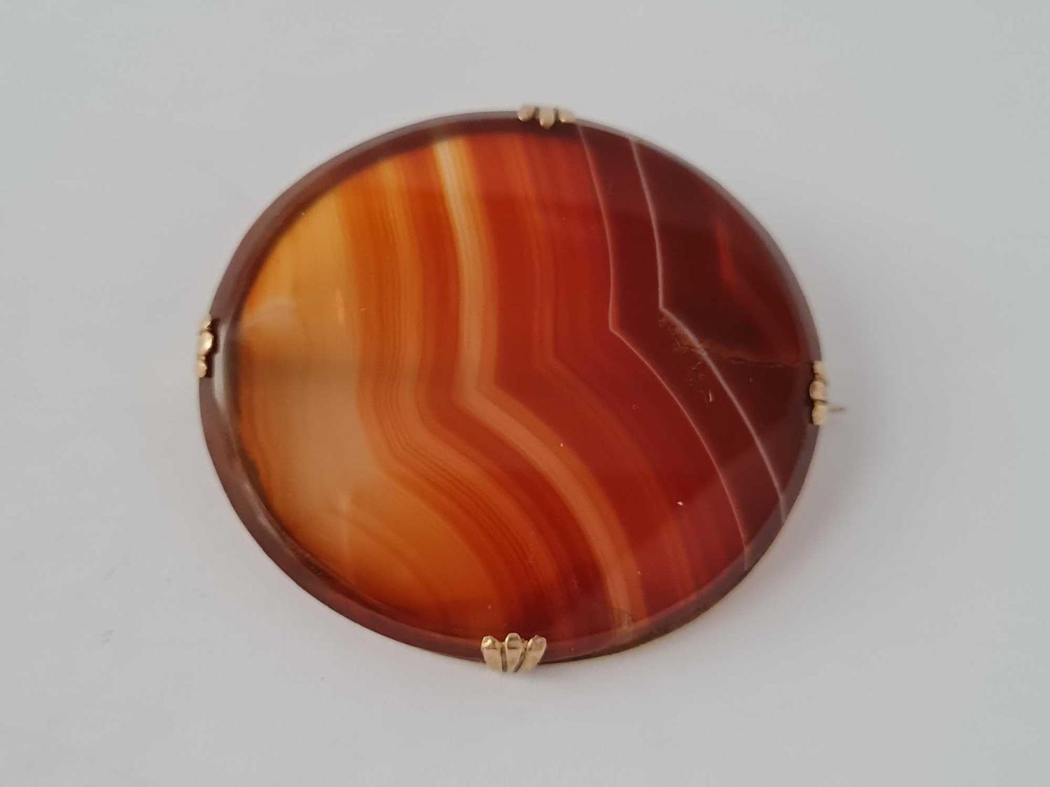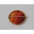 A circular agate brooch 3.5cm dia in 9ct frame 11.2g inc