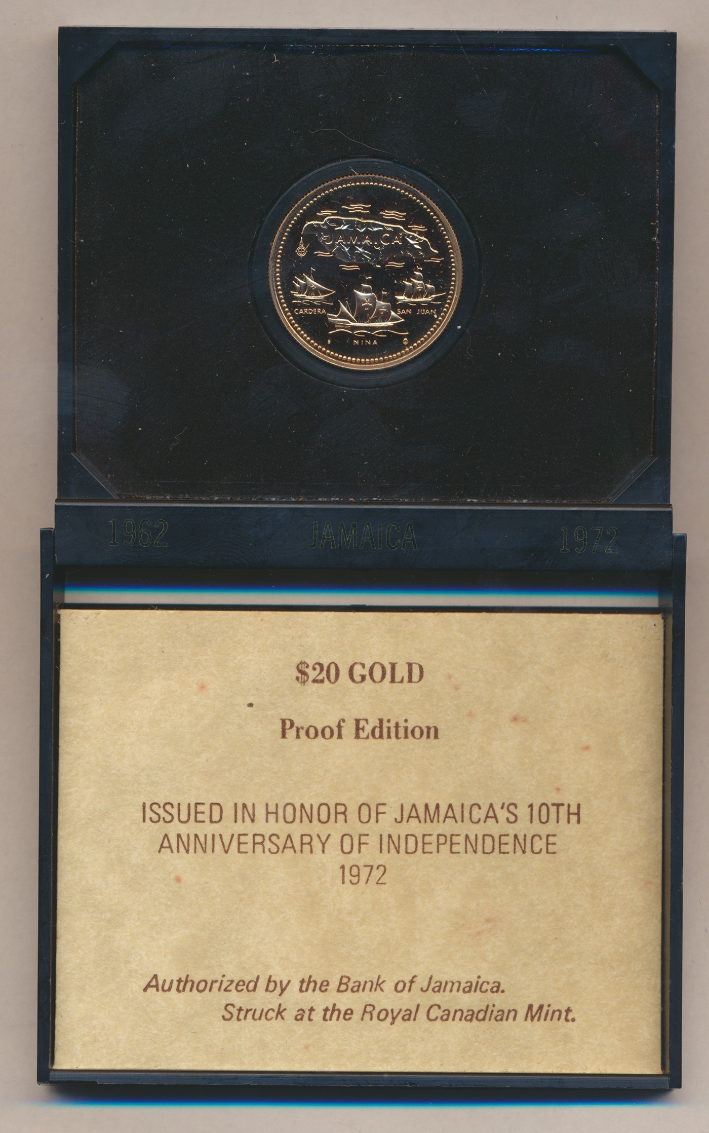 Investment Gold lot - documents required. Jamaica. 1972 $20 proof FDC. (Y)