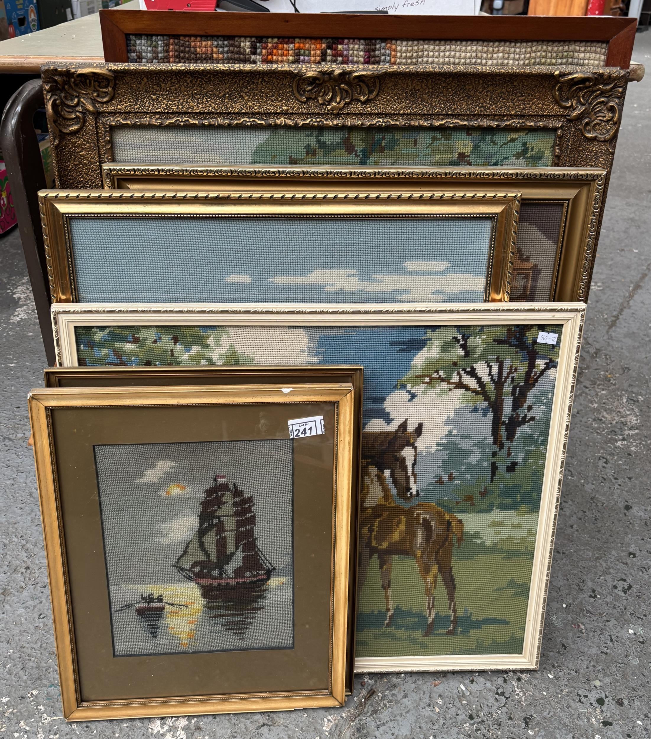 Quantity of framed and glazed cross stitches