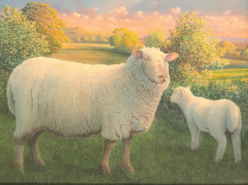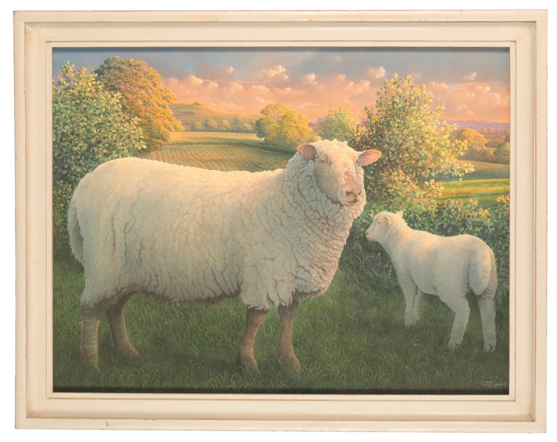 *JAMES LYNCH (B.1956) A sheep with lamb in a landscape