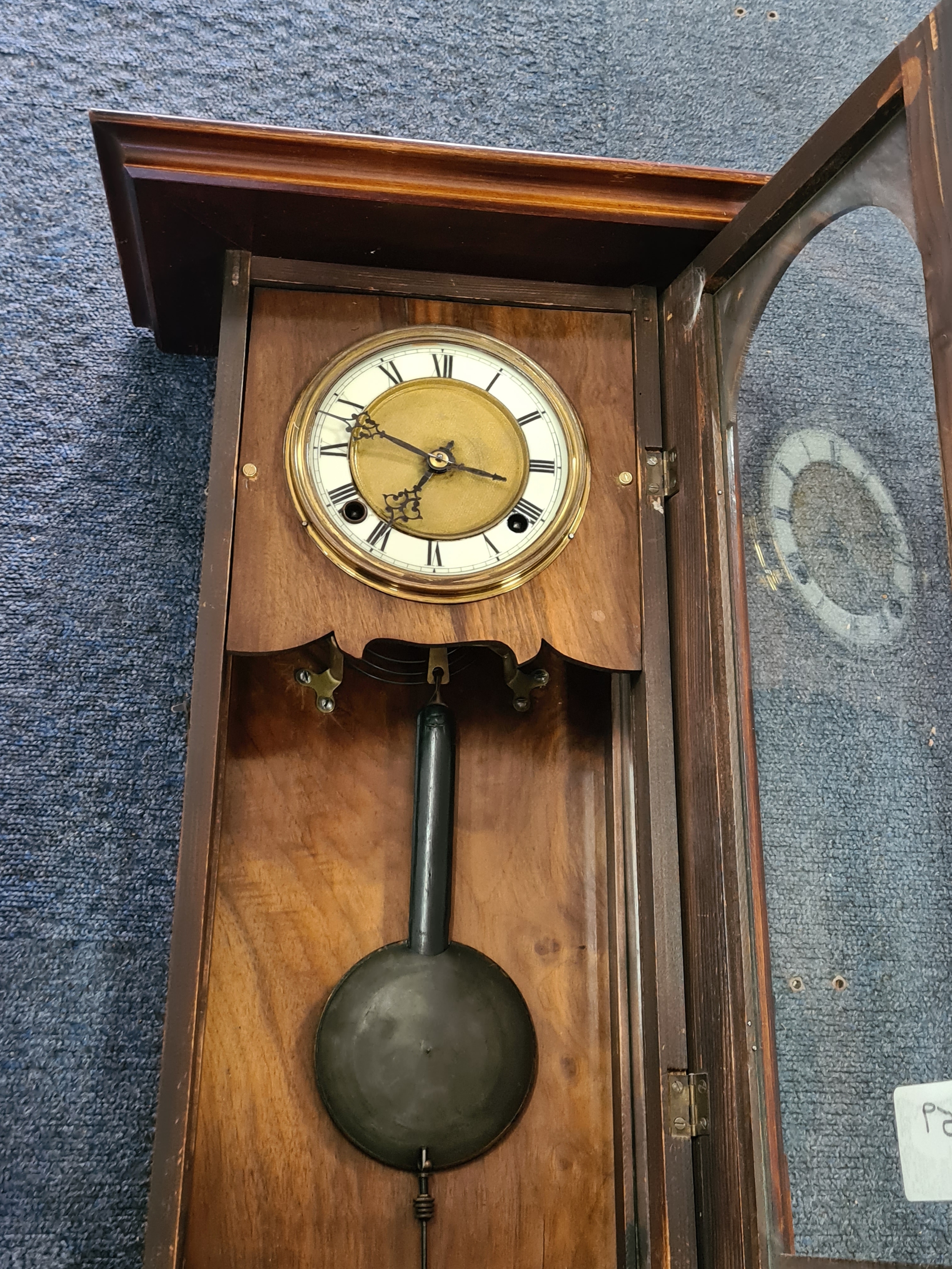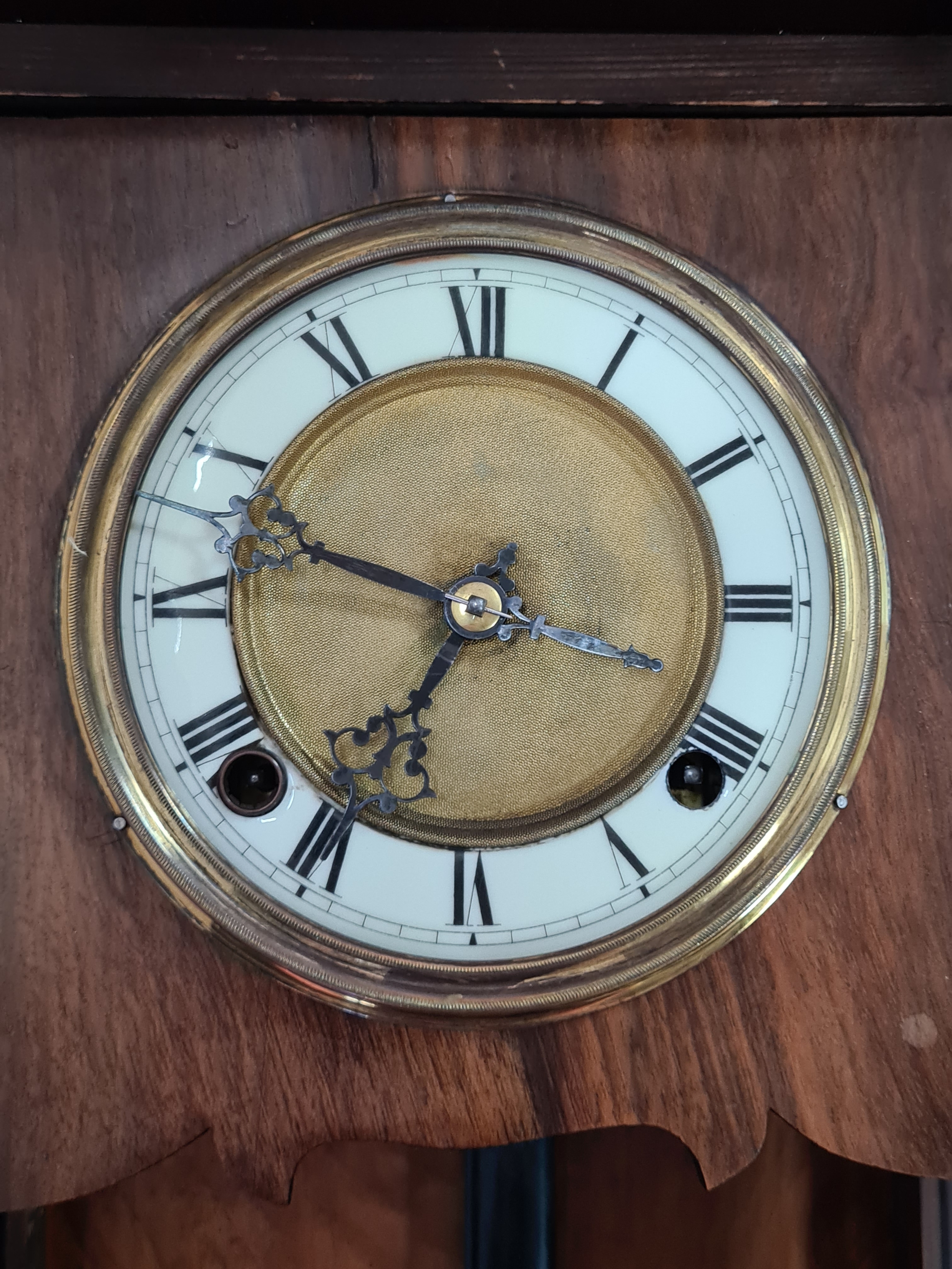A German /Austrian Antique Walnut Wall Clock. Measures 72cm ...