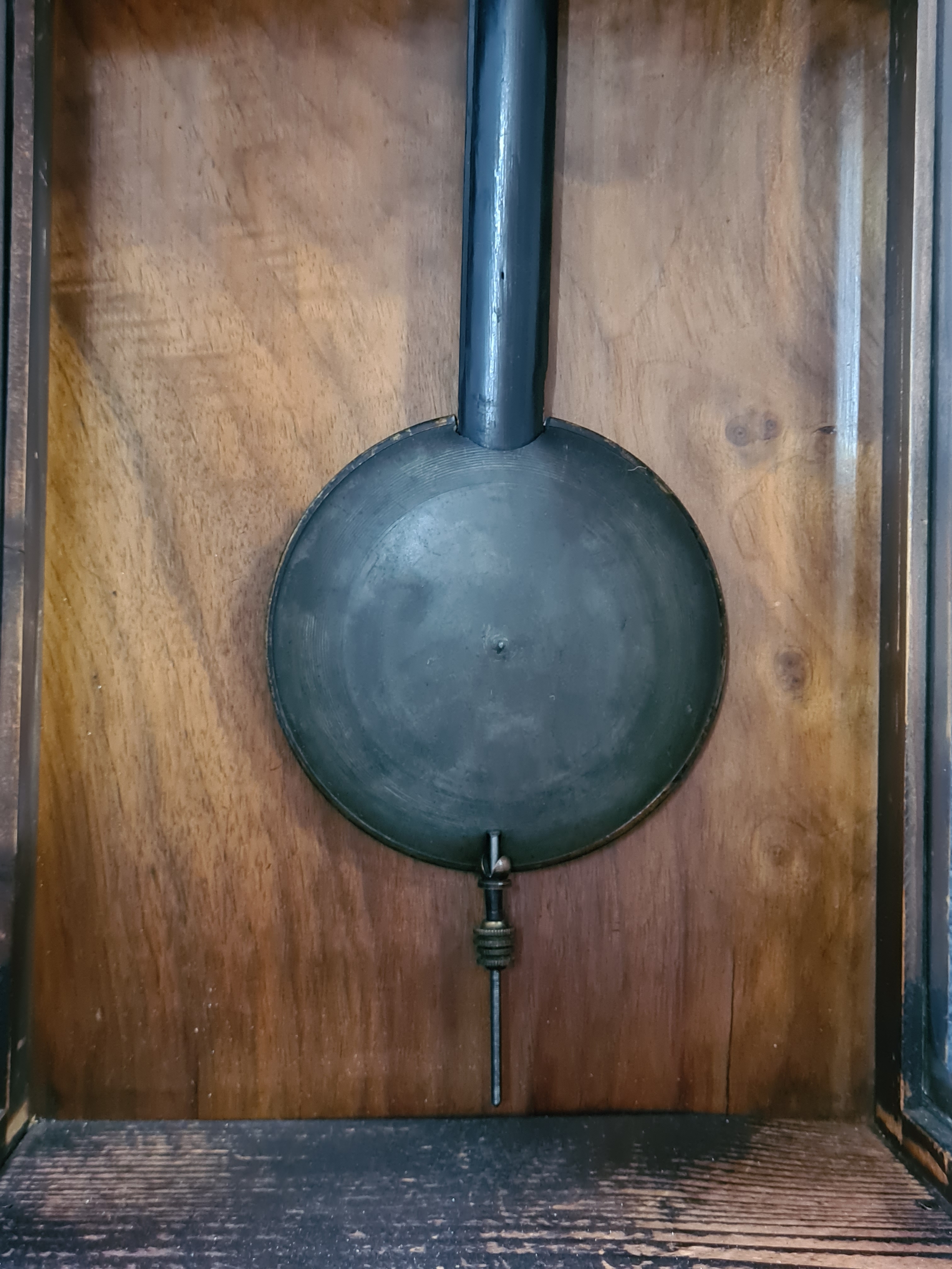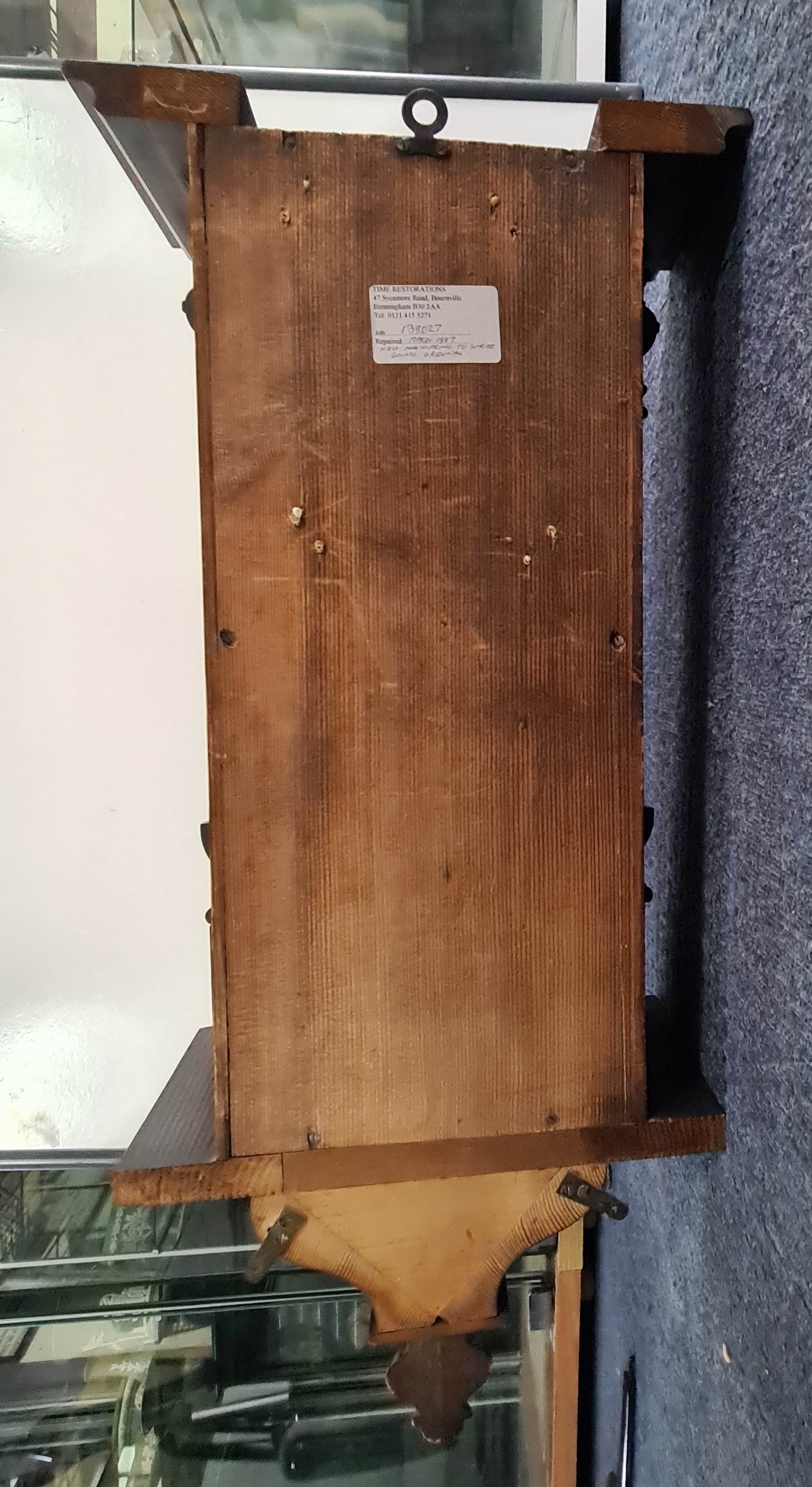 A German /Austrian Antique Walnut Wall Clock. Measures 72cm high by 31.5cm wide by 18cm deep.