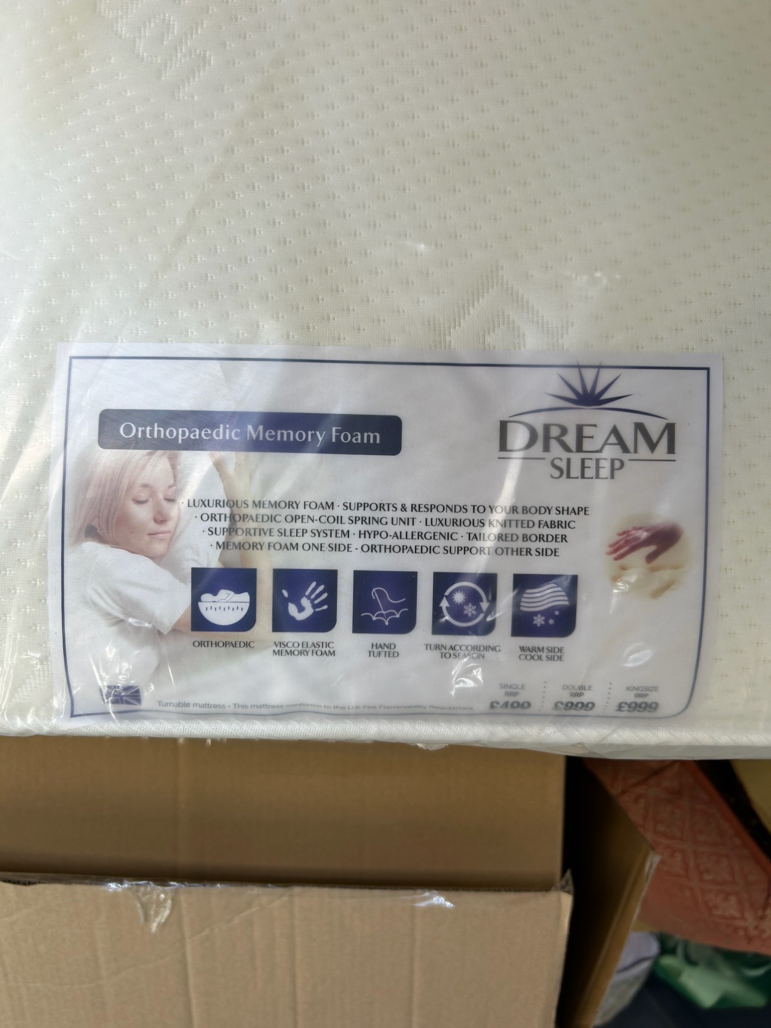 Brand New Sealed King Size Tufted Damask Mattress - Orthopaedic Luxury Memory Foam