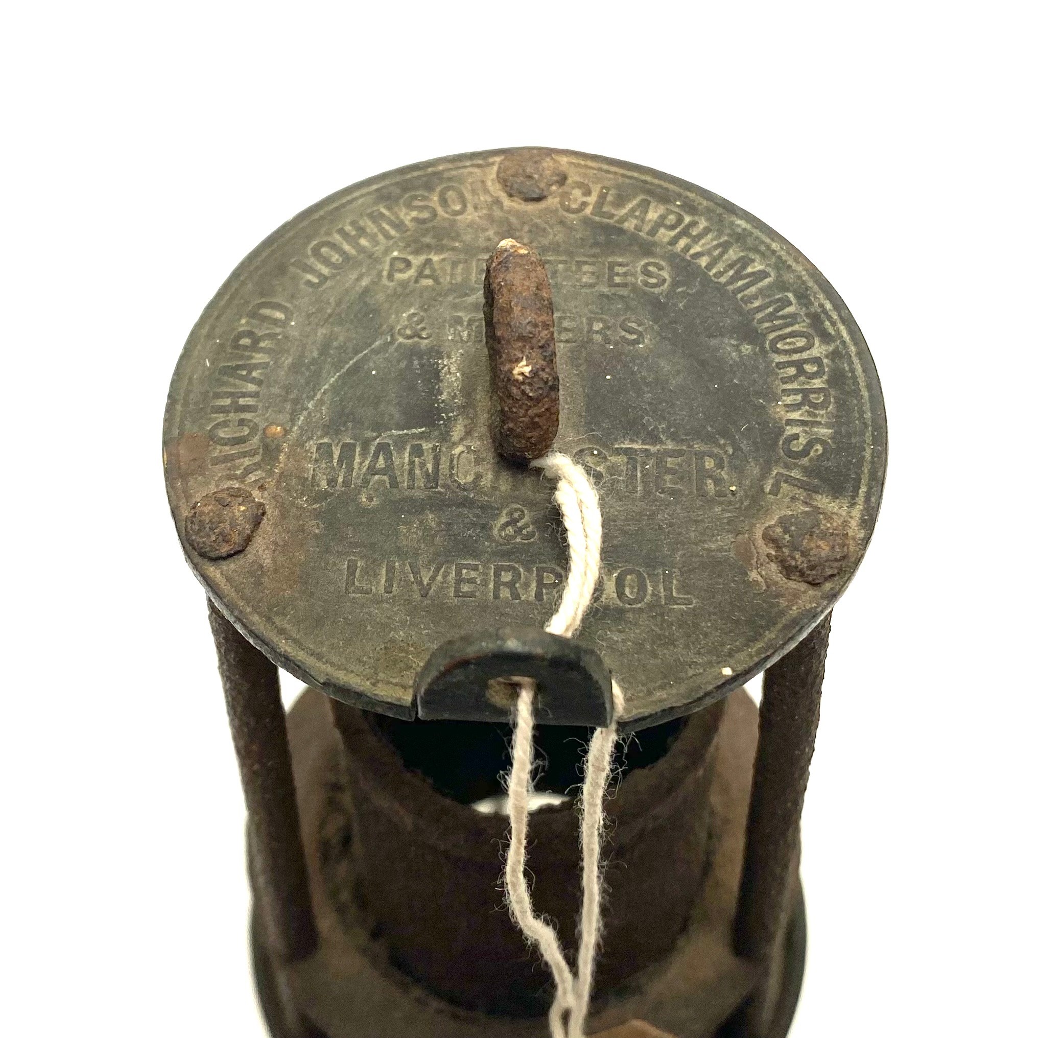 Miner's safety lamp, made by Richard Johnson, Clapham & Morris Ltd, (rare with serial numbers to the base and with age related wear).