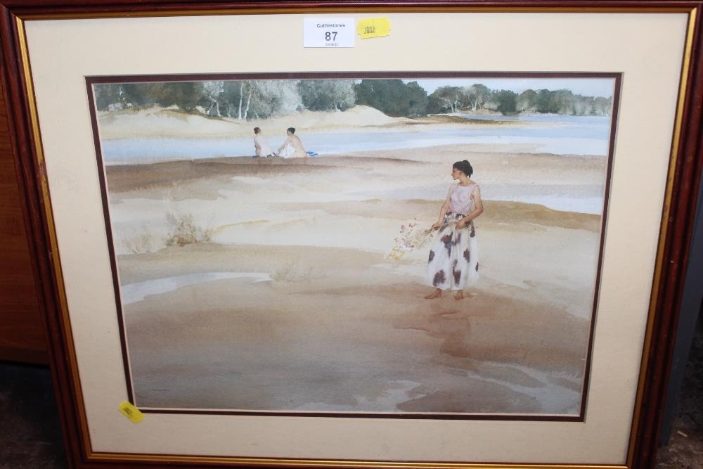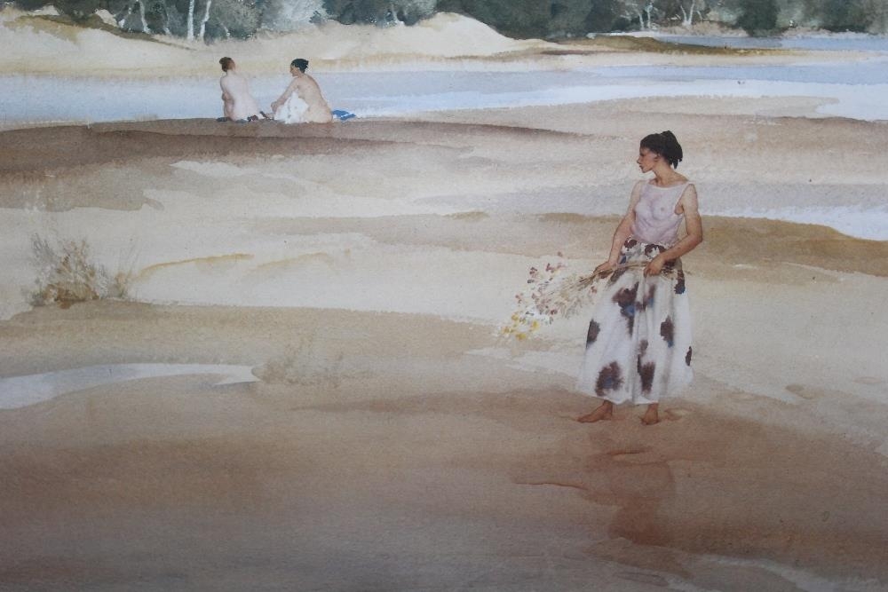 A FRAMED AND GLAZED W RUSSELL FLINT PRINT ENTITLED 'JEMIMA IN ANGLESEY' 30CM X 40CM