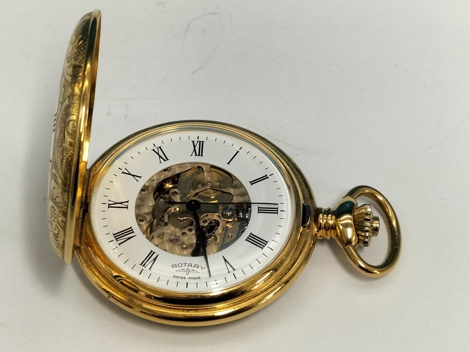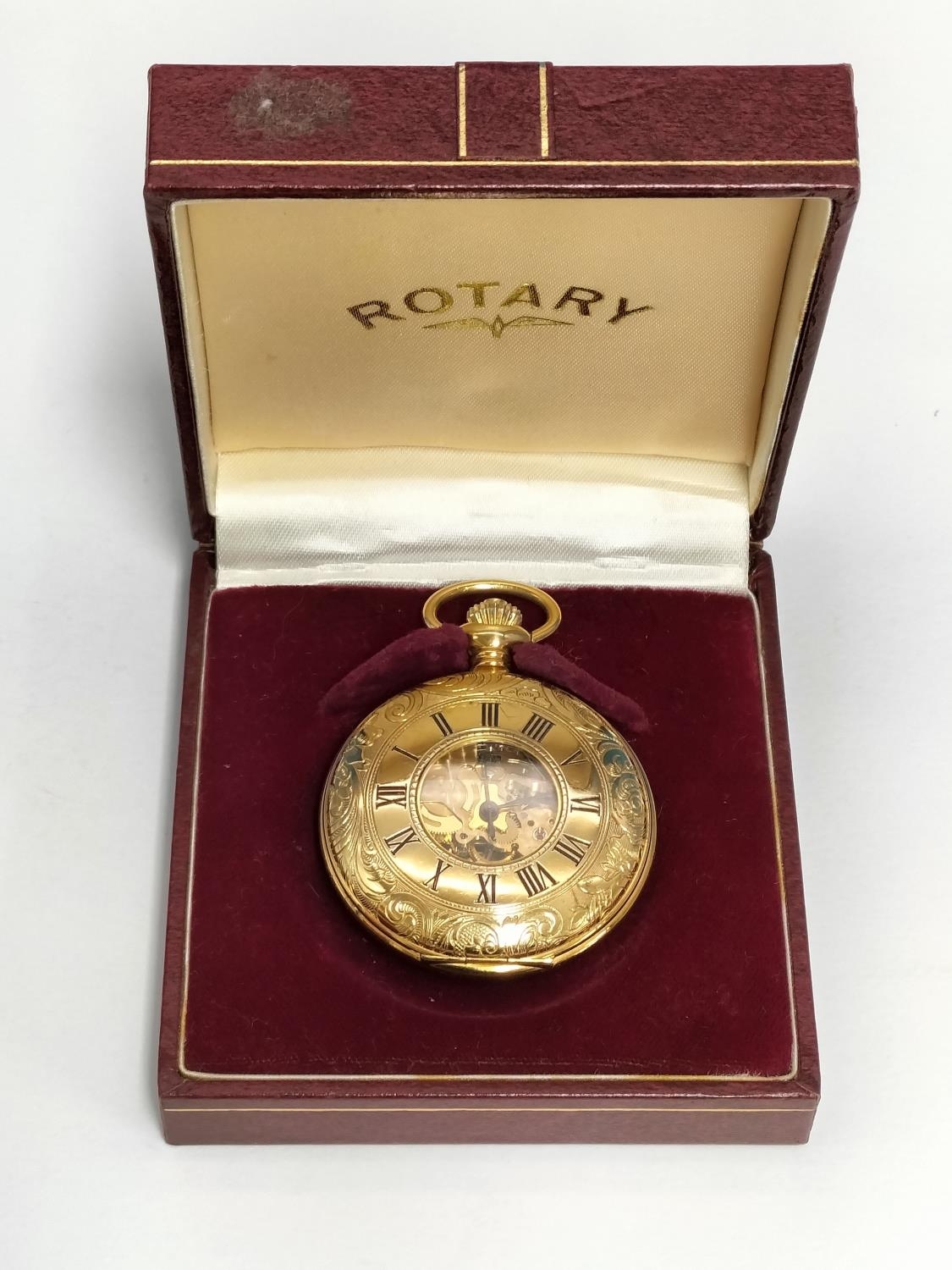 Boxed Gold Coloured Rotary Half Hunter Pocket Watch. W/O