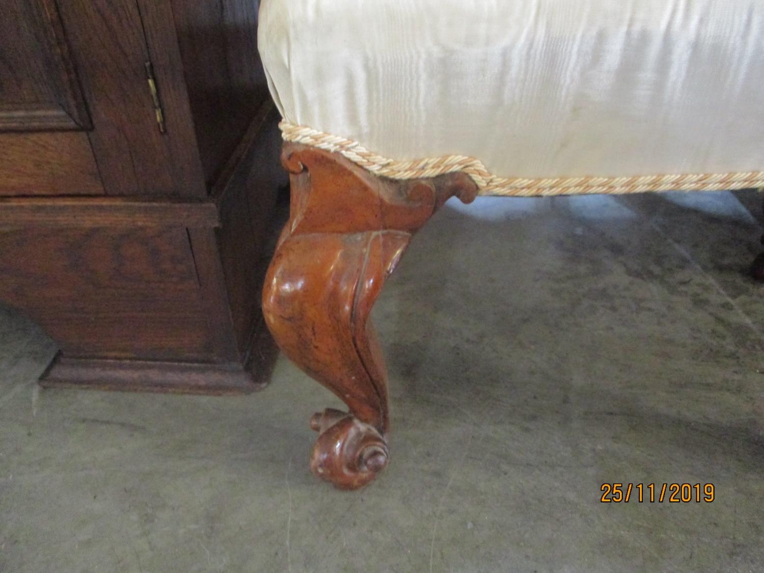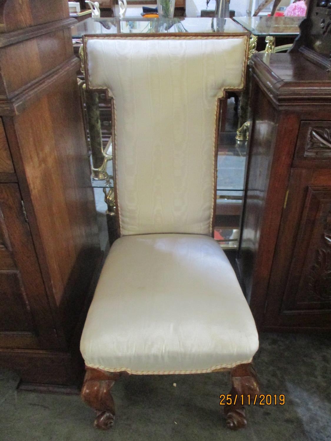 Antique Prie - Dieu Prayer Chair with Silk Upholstery and Beautifully Carved Scroll Legs