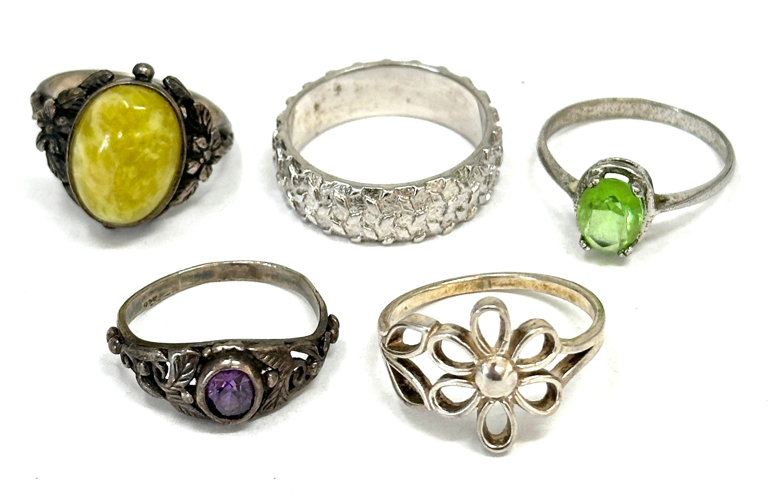 5 vintage silver rings