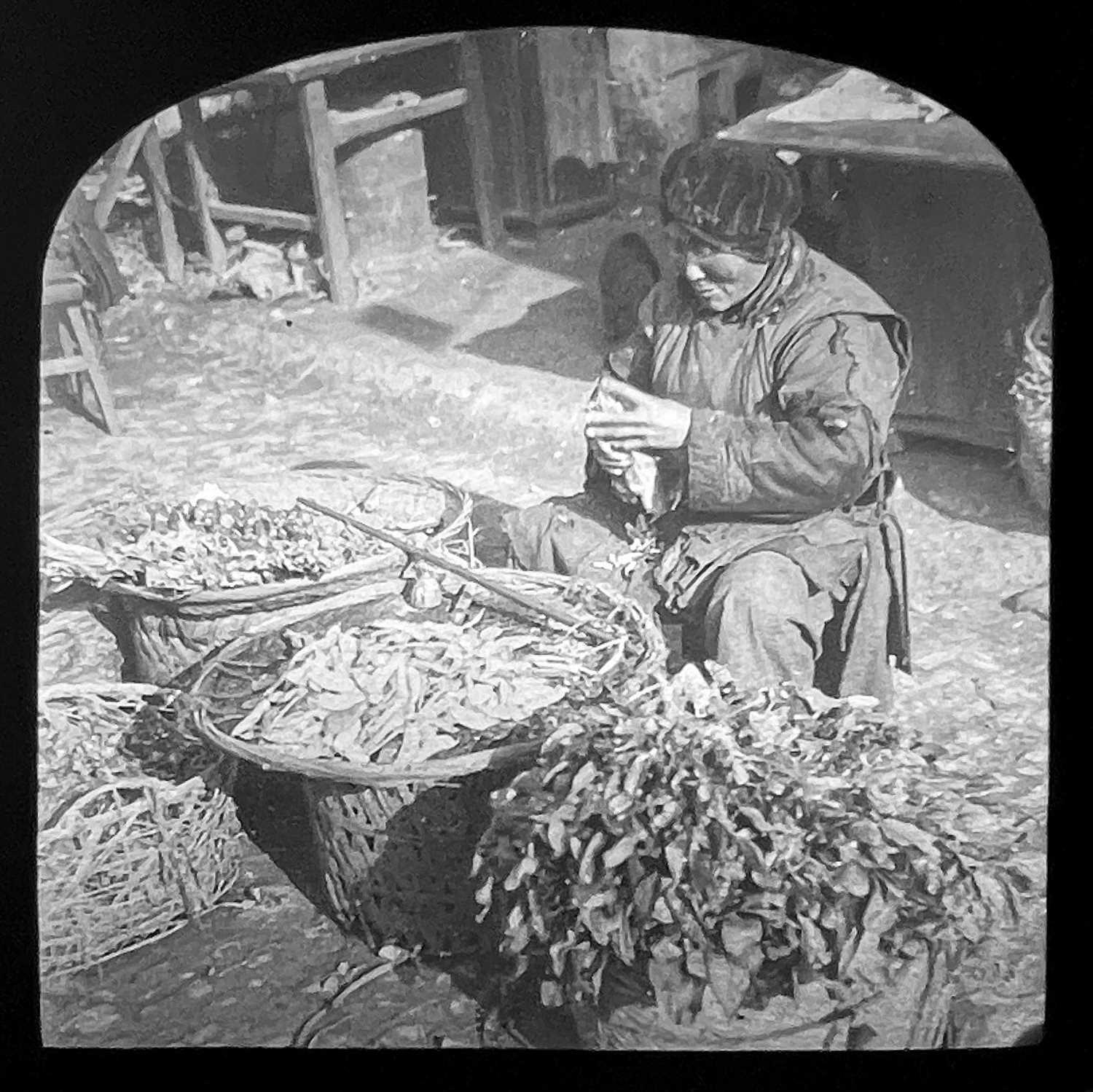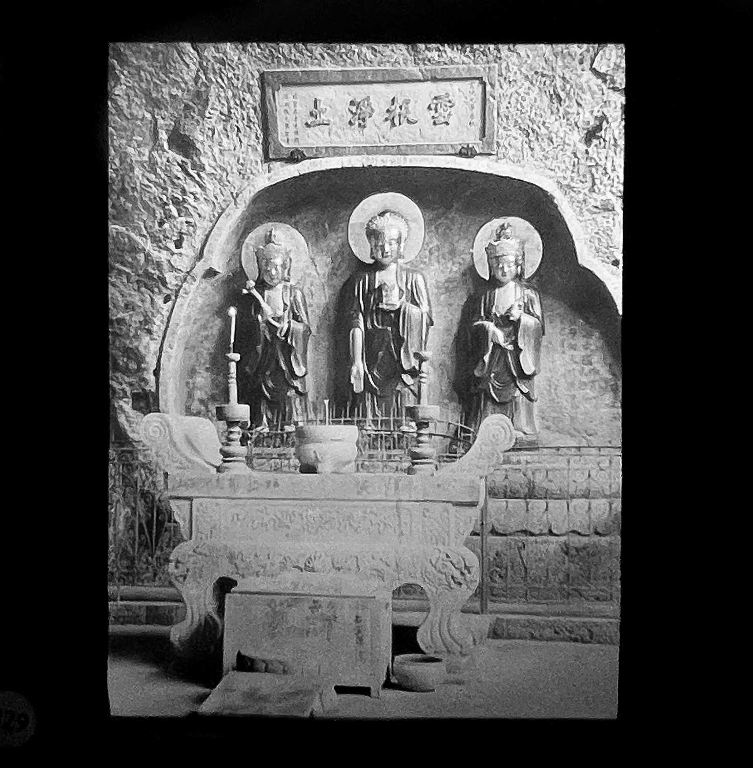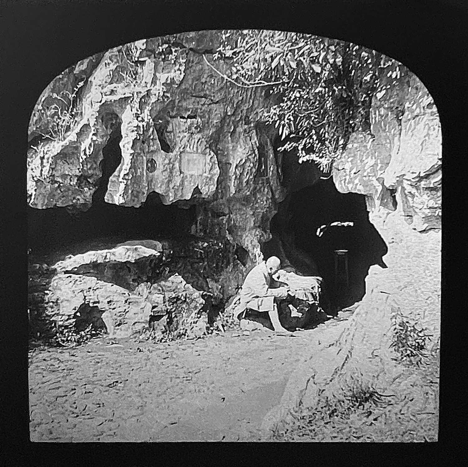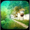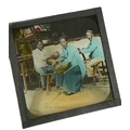 China interest. A collection of glass lantern slides. Over one hundred b+w glass slides in two boxes, with descriptions and numbers, some colour slides, showing temples, people, resturants, city scenes, processions, pagodas, the Summer Palace etc, [c.1900]. (100+)