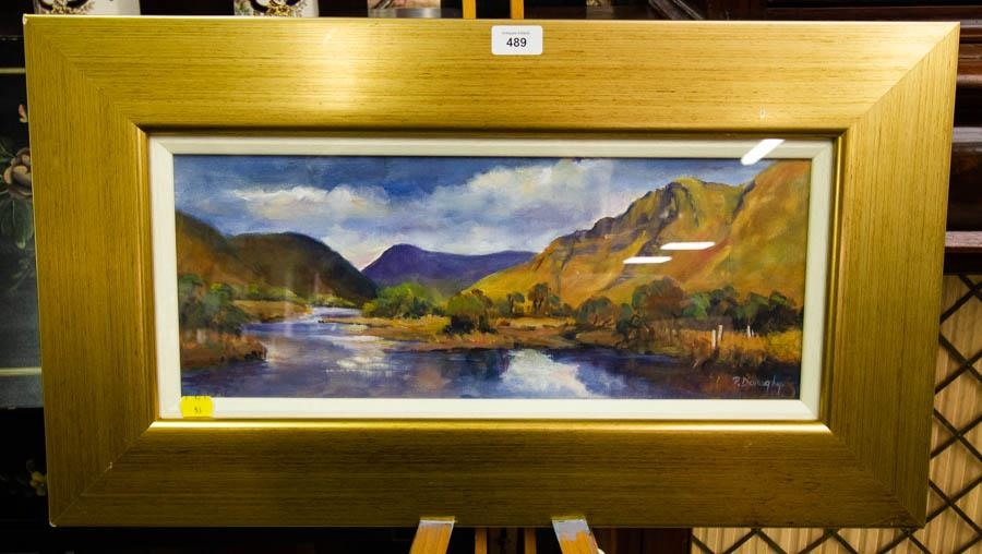 OIL ON BOARD PADDY DONAGHY "BUNDORAN RIVER" 50 X 20 CM