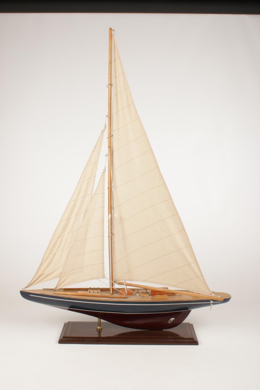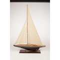 A large wooden model of a sail boat. (Height 85cm).