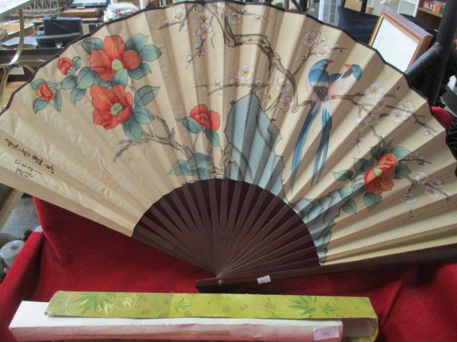 HAND PAINTED ORIENTAL FAN WITH ORIGINAL BOX