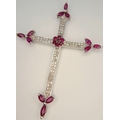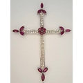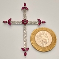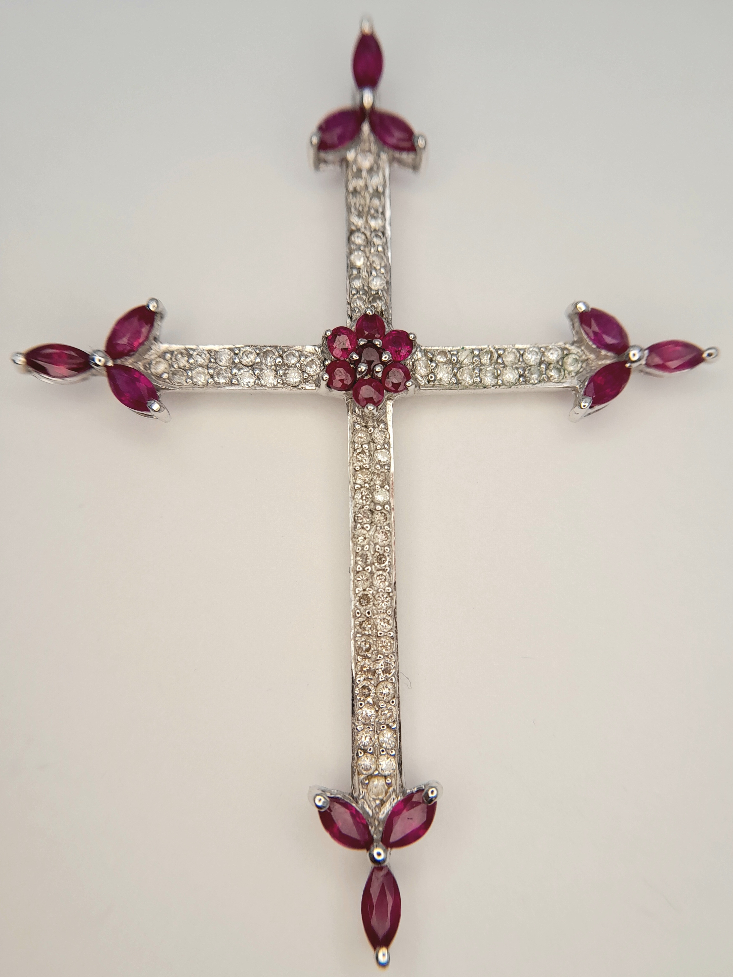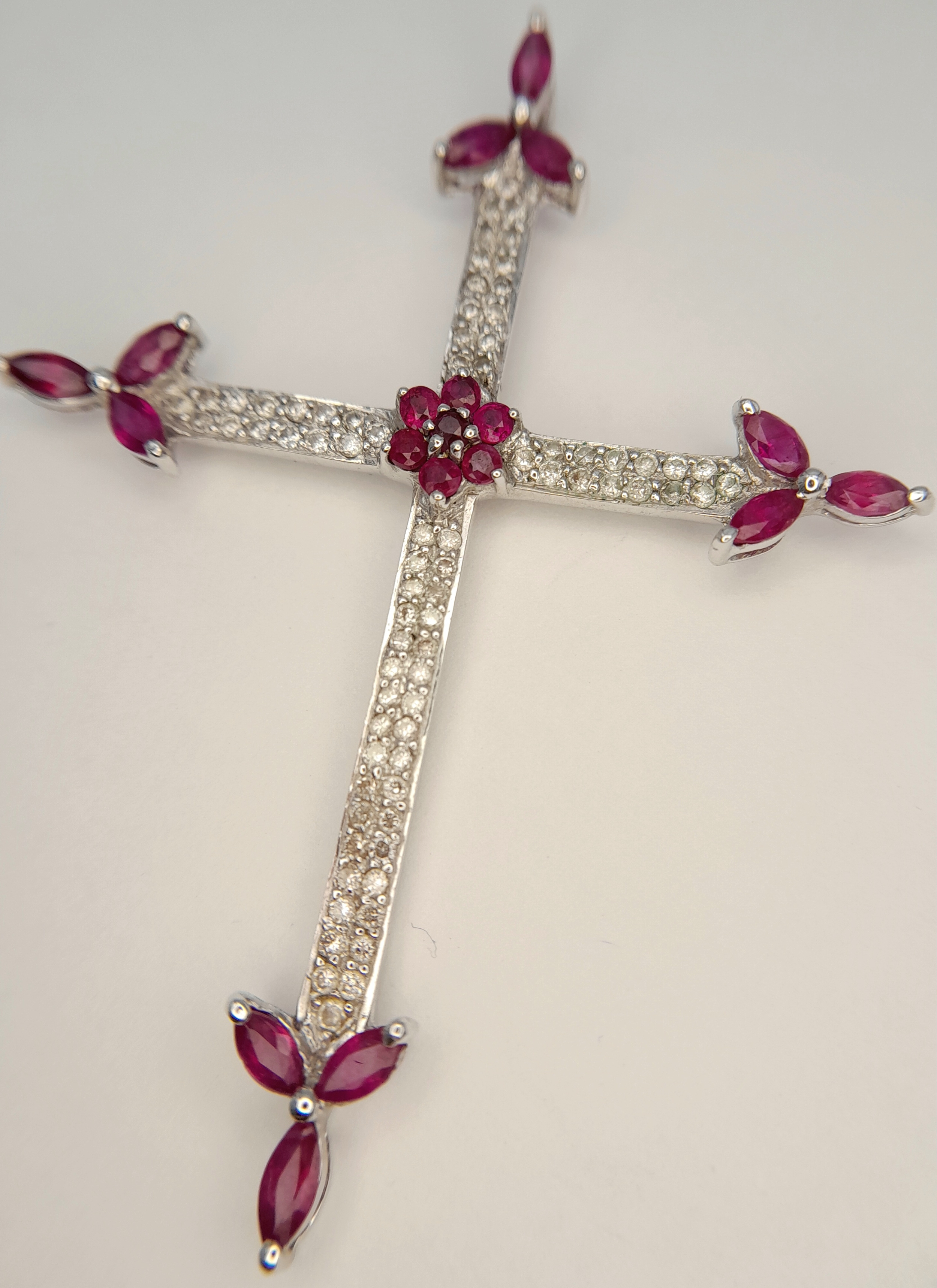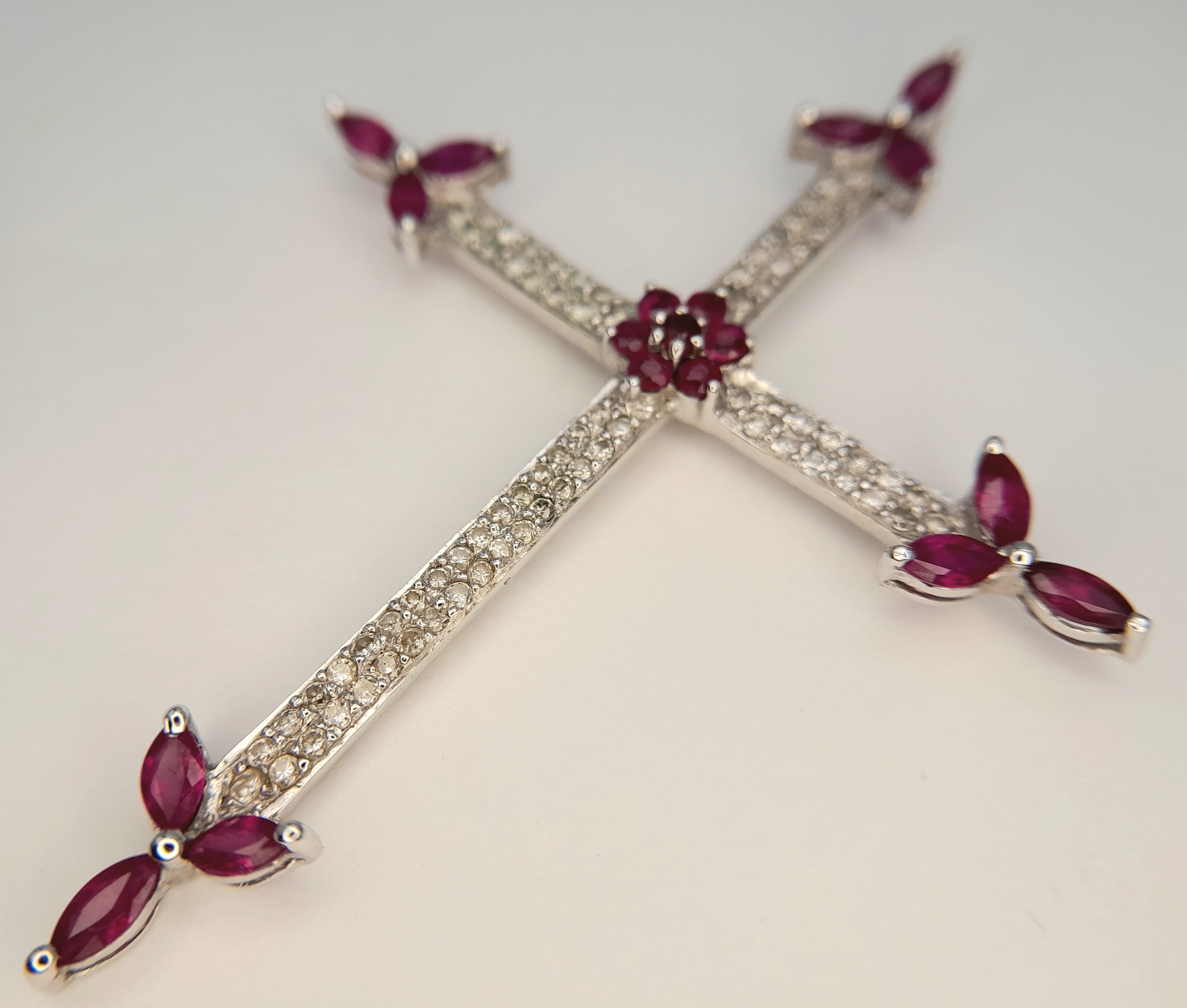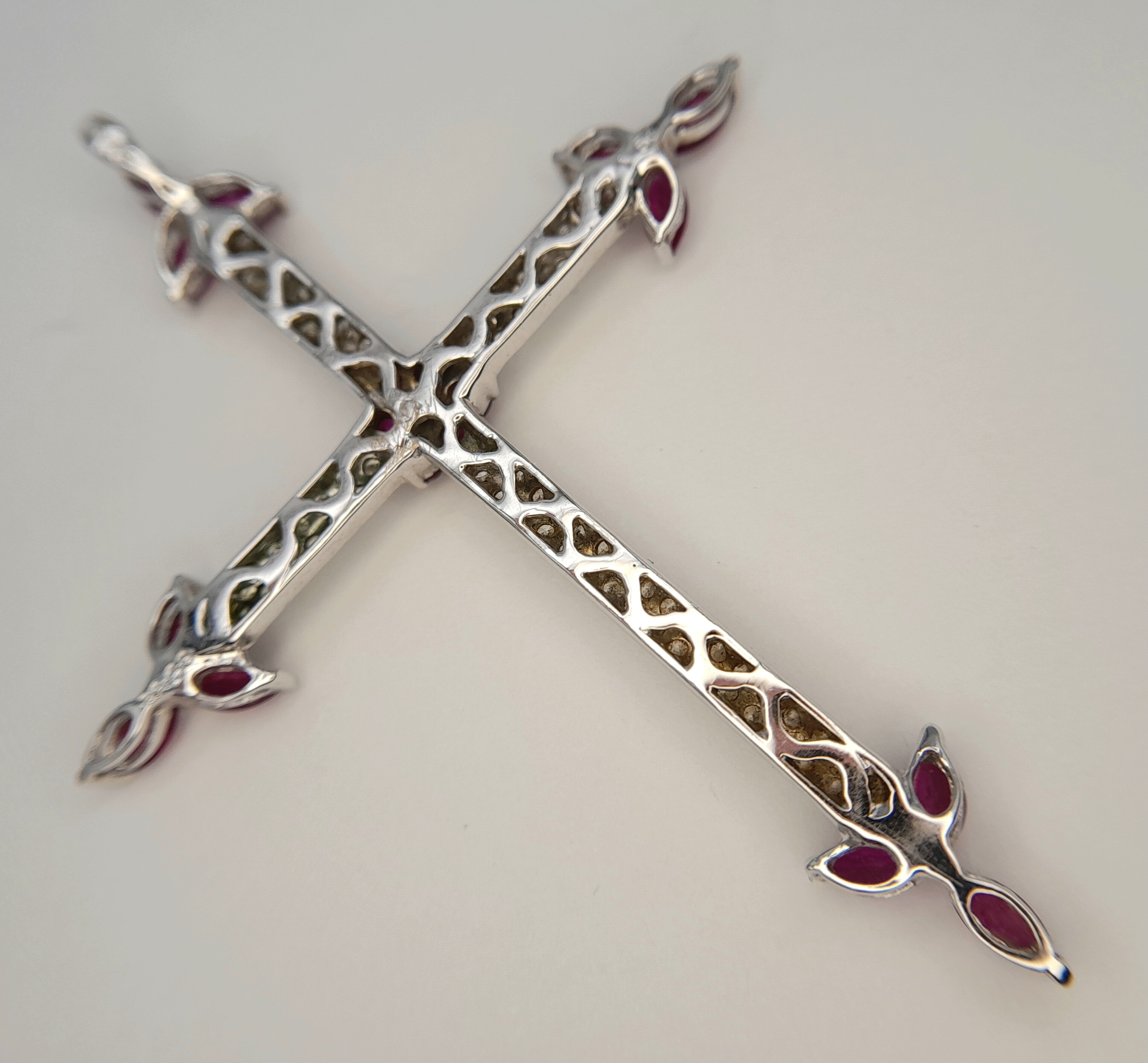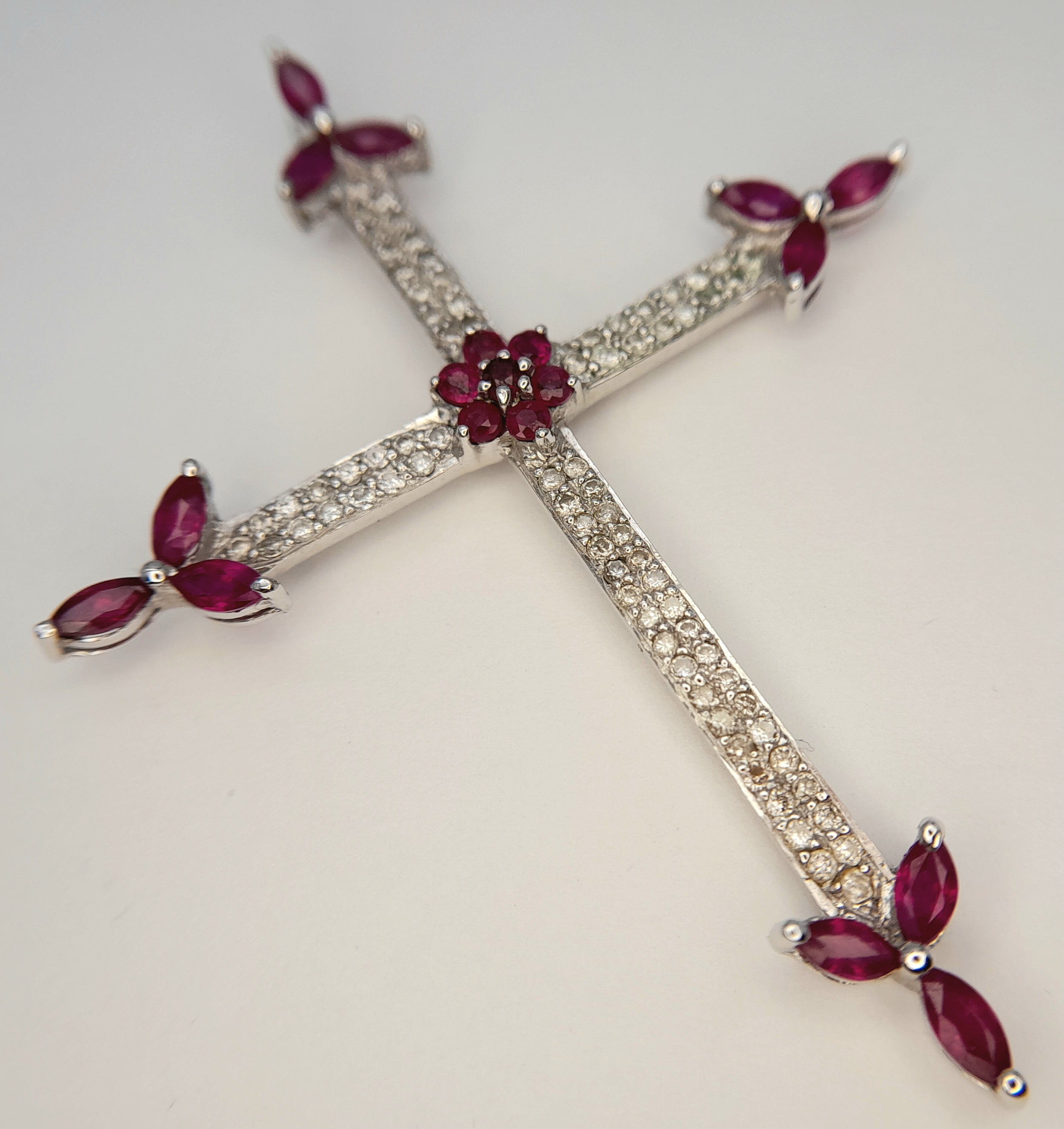 AN 18K WHITE GOLD DIAMOND AND RUBY SET CROSS PENDANT. 4.1G. 6CM. SC-4084.
