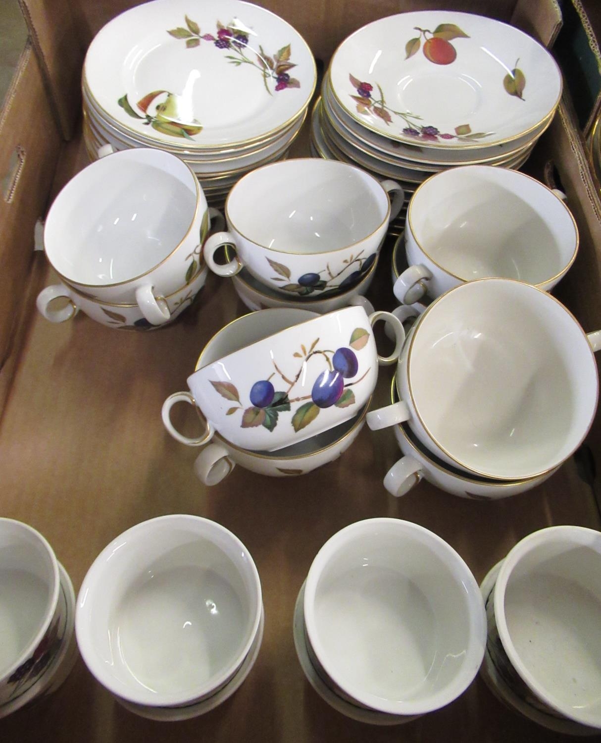 Royal Worcester Evesham oven to tableware - Set of ten soup cups and saucers, twelve plates D16.5cm and eight ramekins
