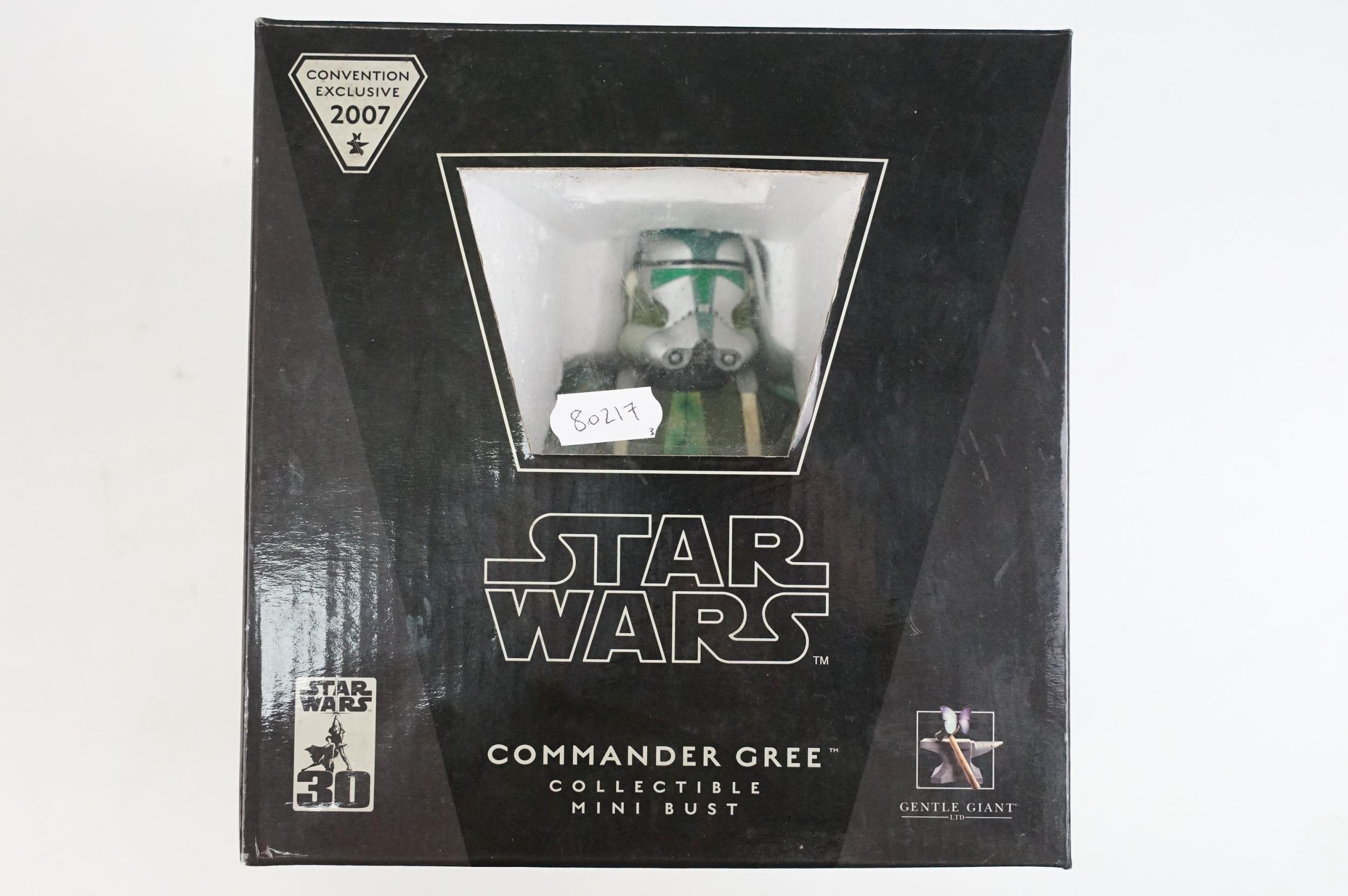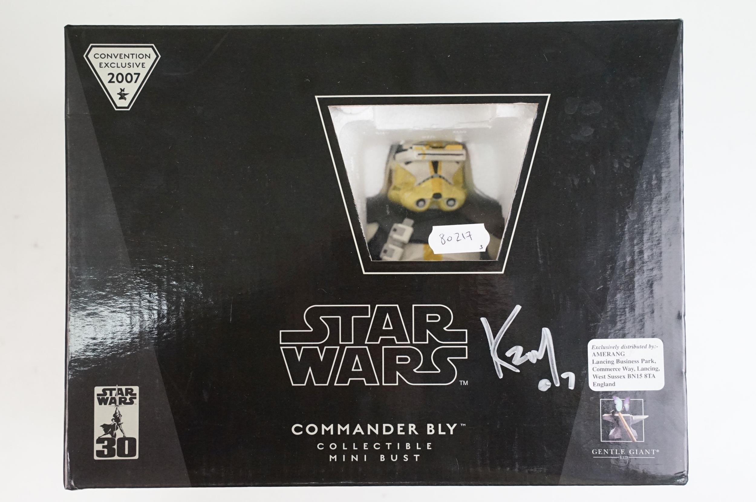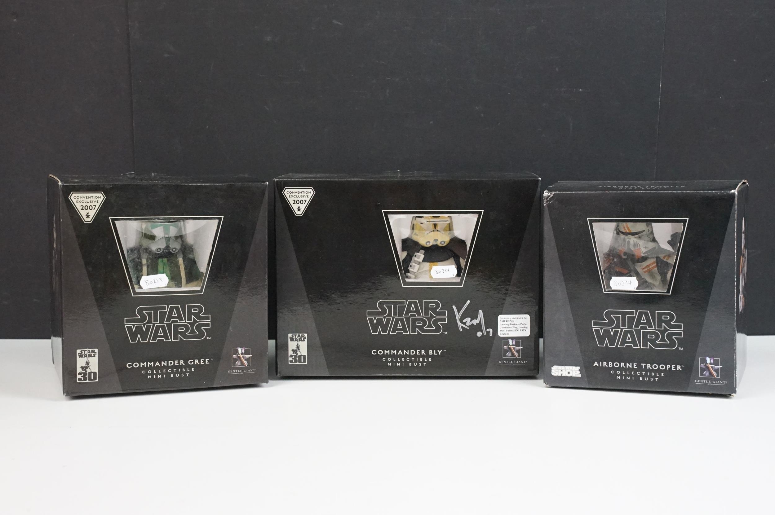 Star Wars - Three boxed Gentle Giant Star Wars Mini Busts to include Commander Bly signed to box (Convention Exclusive 2007), Commander Gree (Convention Exclusive) and Airborne Trooper, all ex