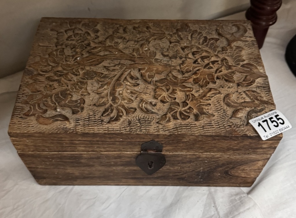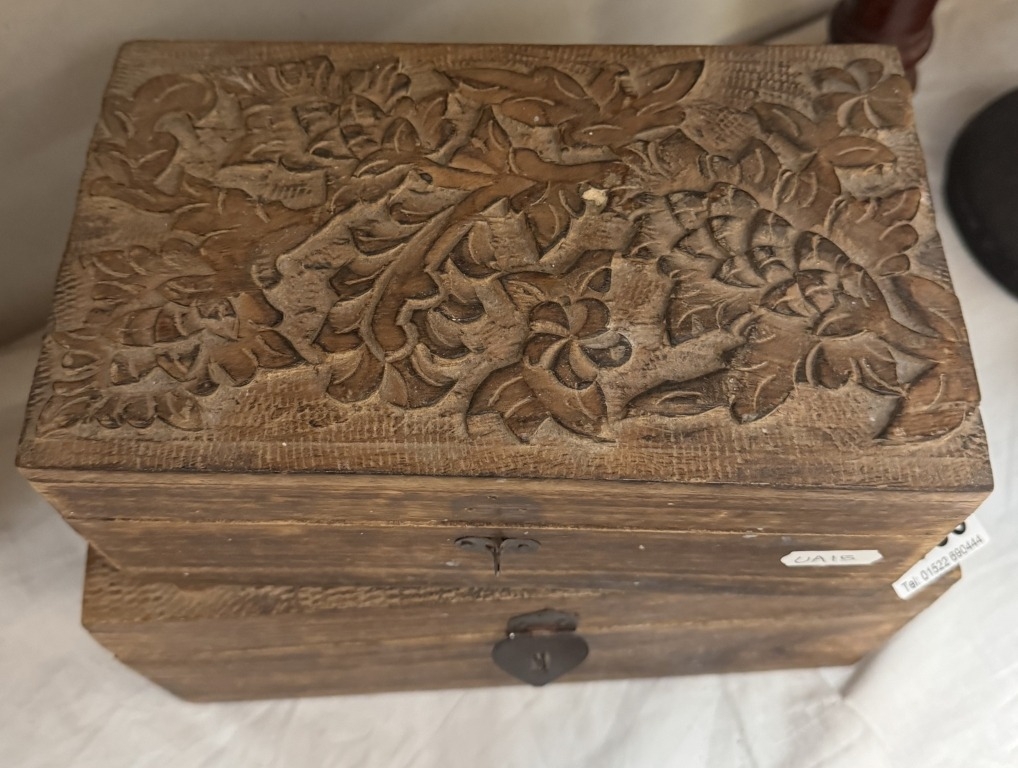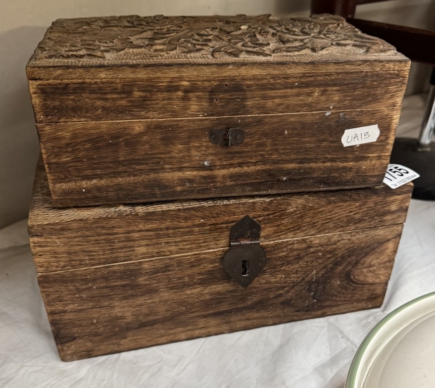 2 Wooden boxes with carved lids