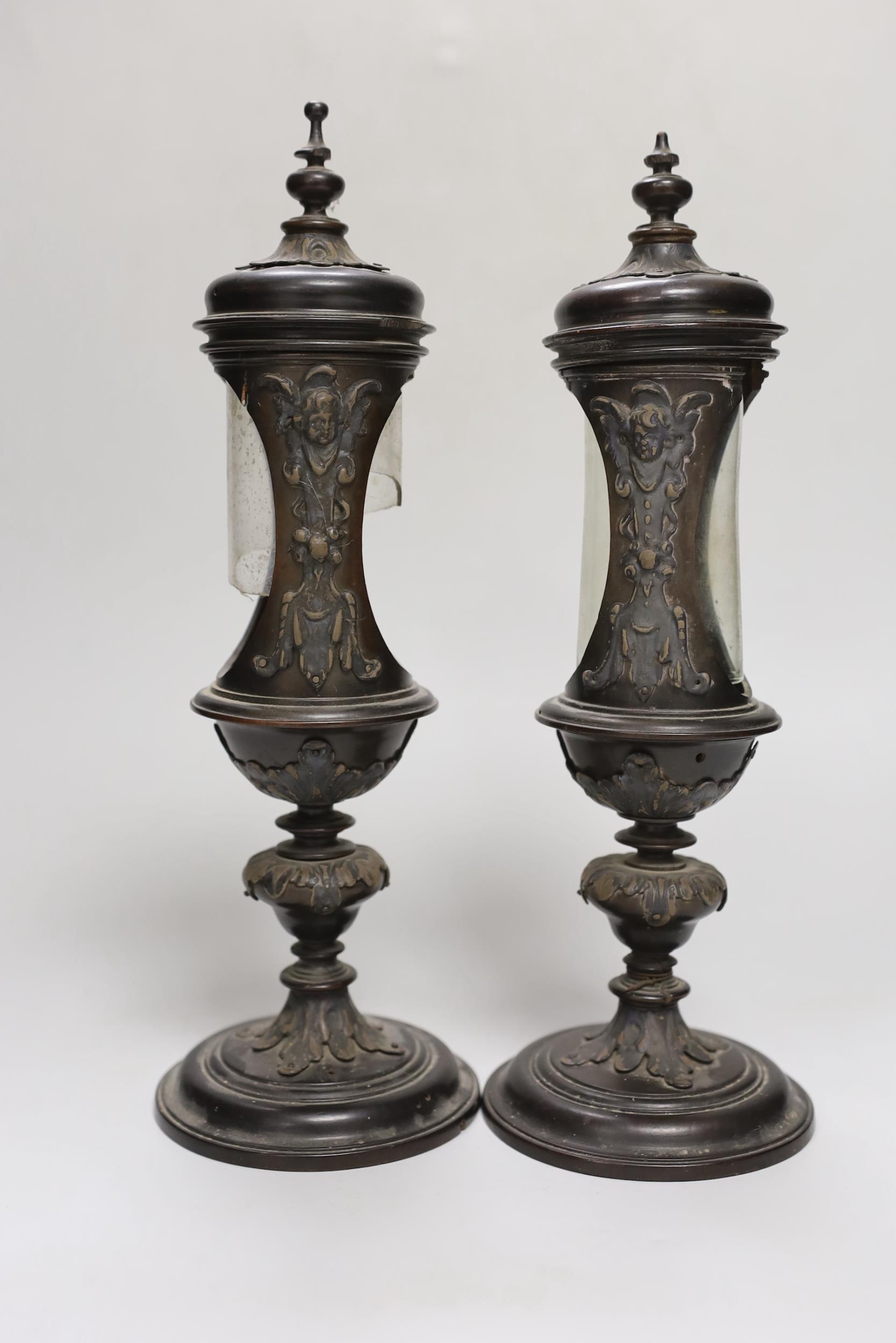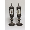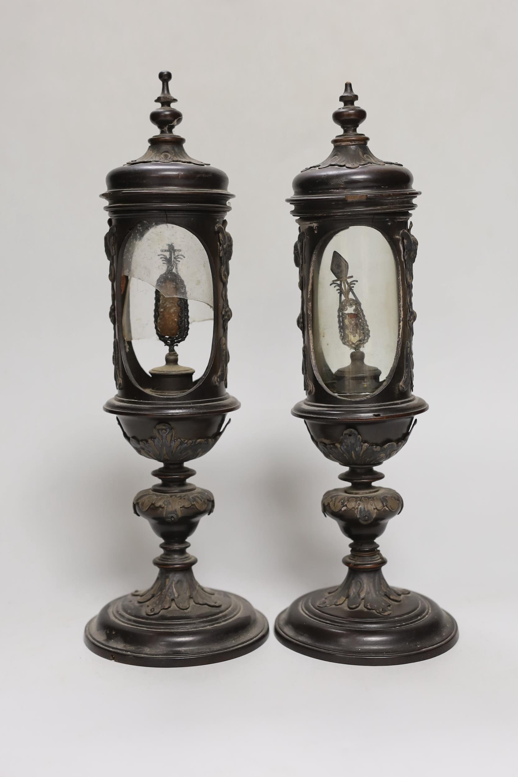 A pair of Victorian walnut reliquaries, 29cm