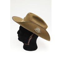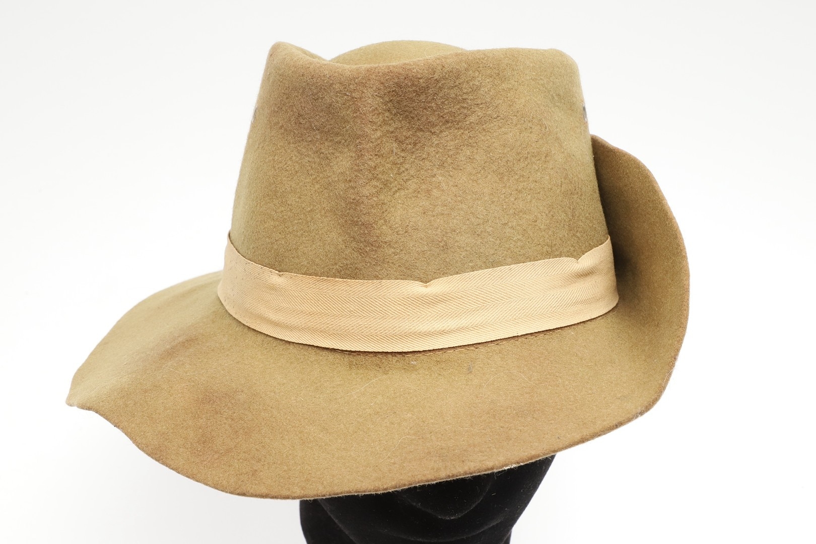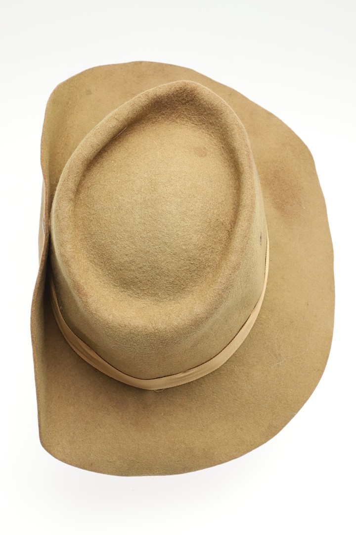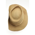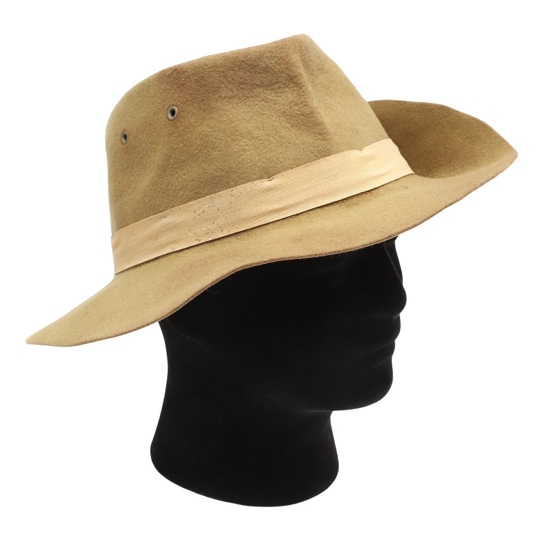 A SECOND WORLD WAR SLOUCH/BUSH HAT ATTRIBUTED TO A CASUALTY WITH THE LANCASHIRE FUSILIERS. A felt bush hat with button side, unmarked but attributed to Charles Robinson of Deer Crest, Trevarriano, Newquay, Cornwall who was a prisoner of war in the far east and killed in action on the 25th May 1944 at the age of 20 whilst serving with the 2/8th Bn of the Lancashire Fusiliers.