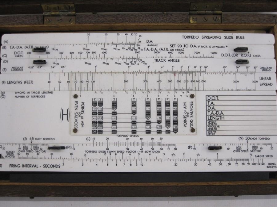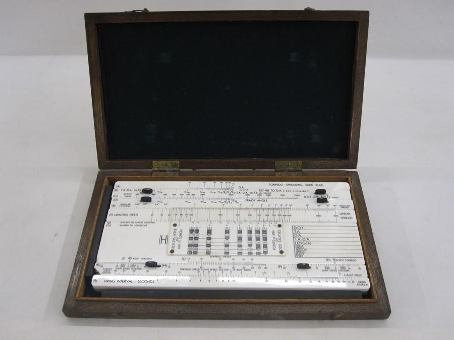 Torpedo slide rule MK. I. for T.C.F.S. MK * manufactured by Betta Manufacturing Co. Eaton Bray Dunstable, in fitted case