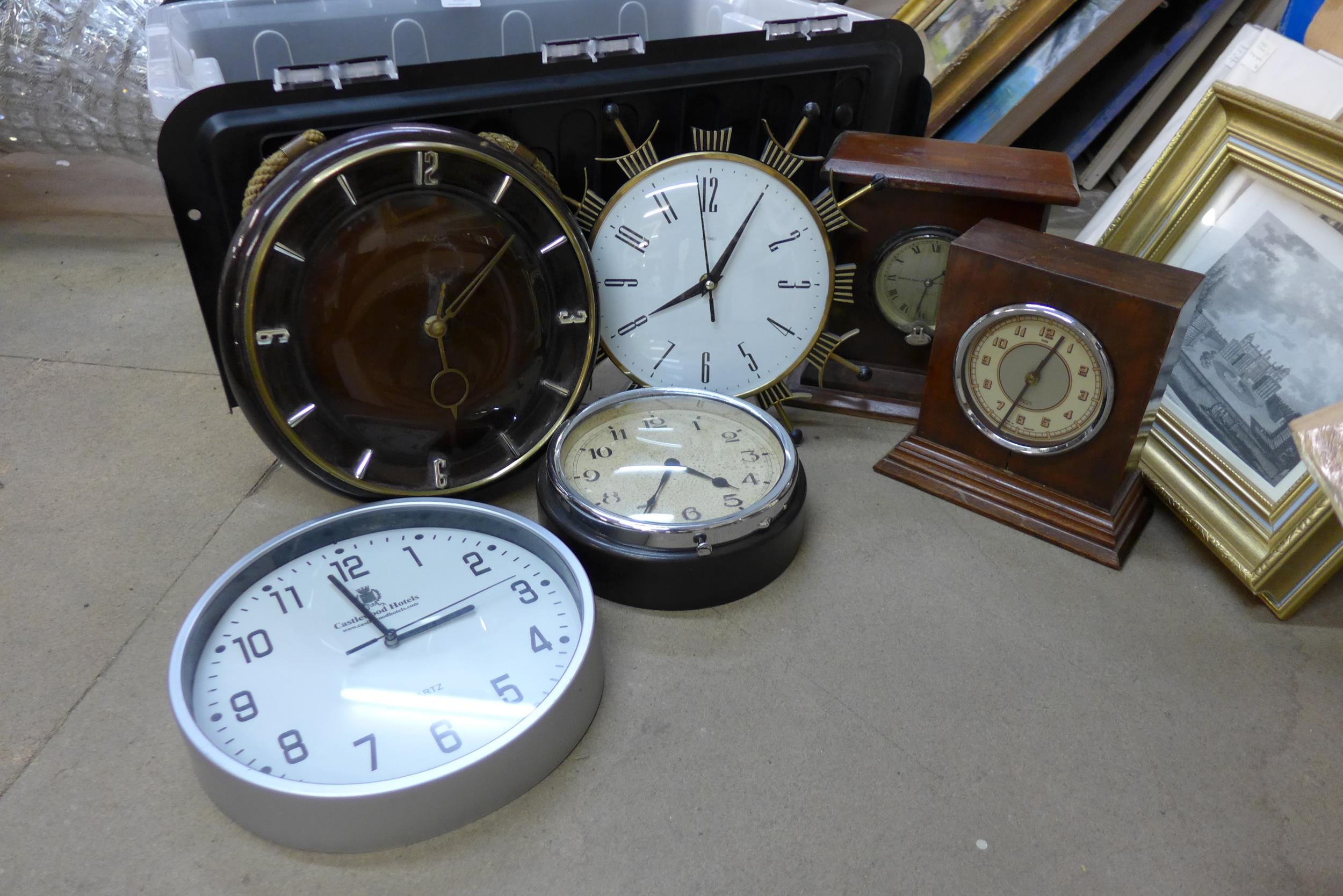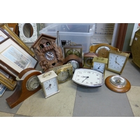 A box of assorted clocks