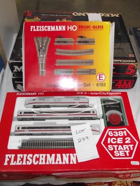 A Fleischmann Ice2 Intercity express, 6381 and a box of track (German), appears complete