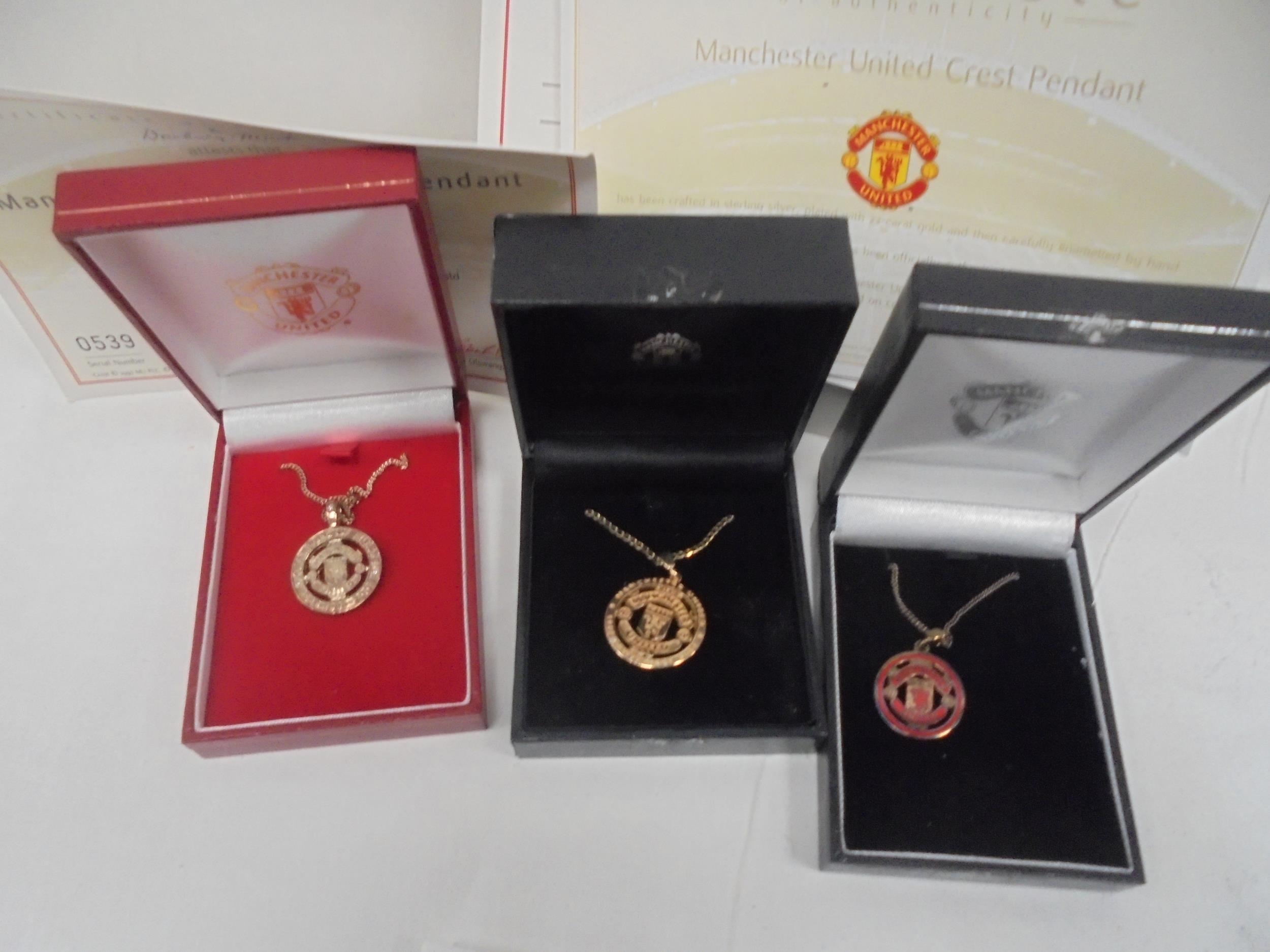 3 STIRLING SILVER MAN UTD PENDANTS
