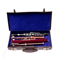 An Ozark five string banjo in original black zip canvas case.