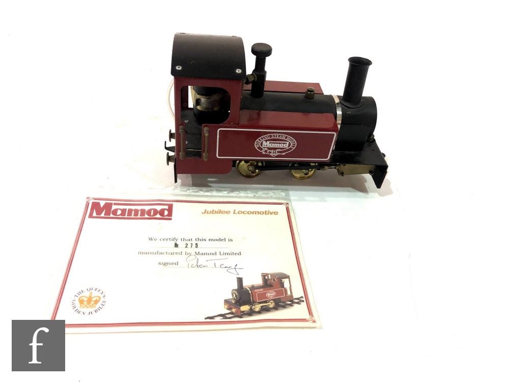 A Mamod O Gauge 0-4-0 Tank Loco red, live steam, one of a limited production produced for the Golden Jubilee being No.275 of 500, unboxed with Limited Edition certificate.