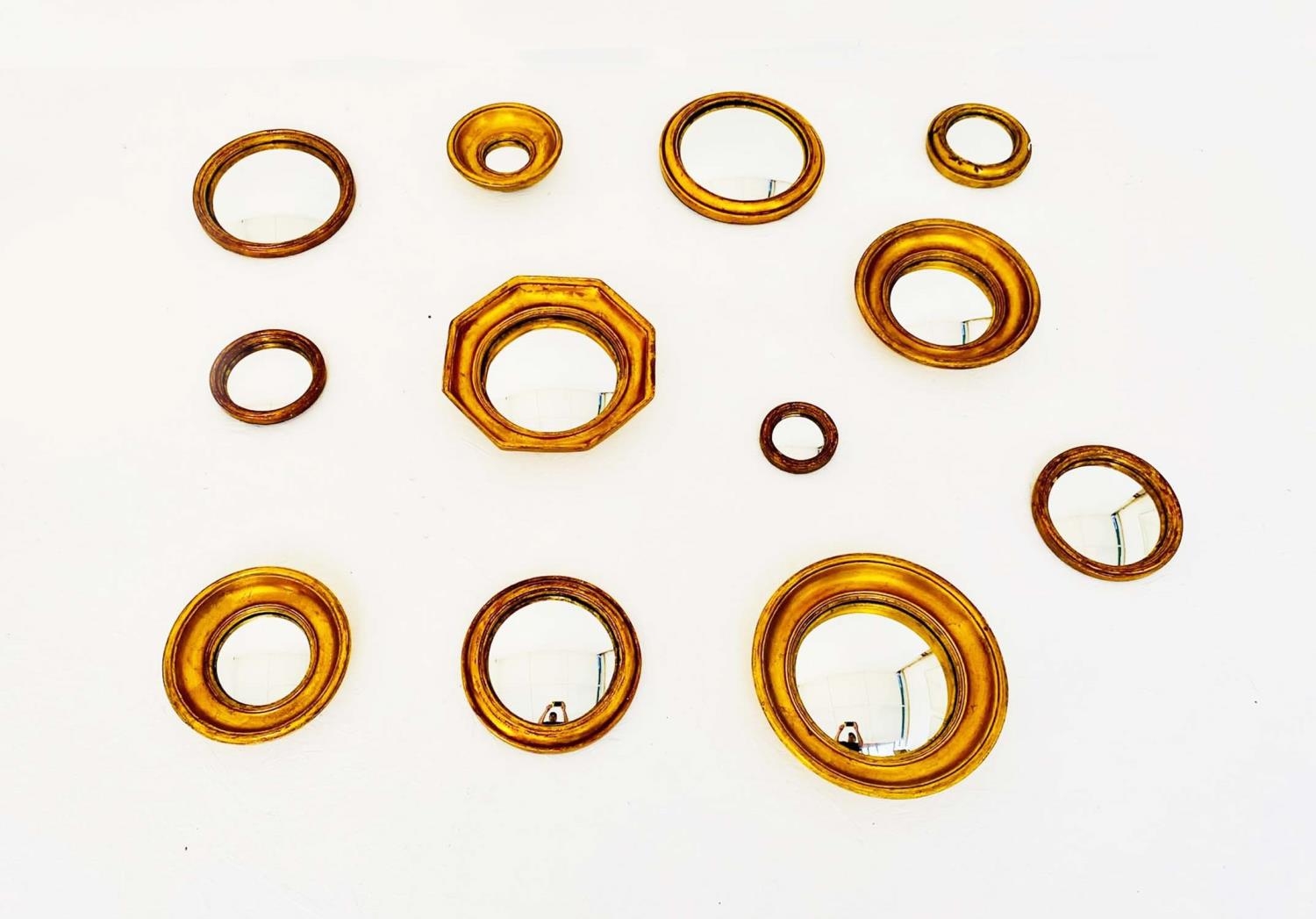 CONVEX WALL MIRRORS, a set of twelve, various, Regency style, gilt frames. (12)