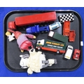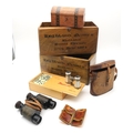 Two varnished wooden containers, each stencilled "Highland Games, Ballater, Royal Deeside, 27th July 1864" in gothic script and measuring approx. 30cm x 15cm x 16cm; a cased pair of "Kram" binoculars by J. Lizars, Aberdeen Ltd., mother of pearl opera glasses, dominoes, Sutherland Highlanders swagger stick etc.