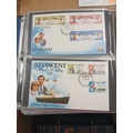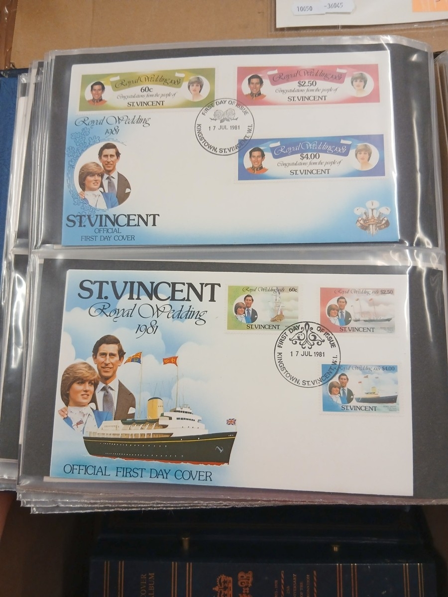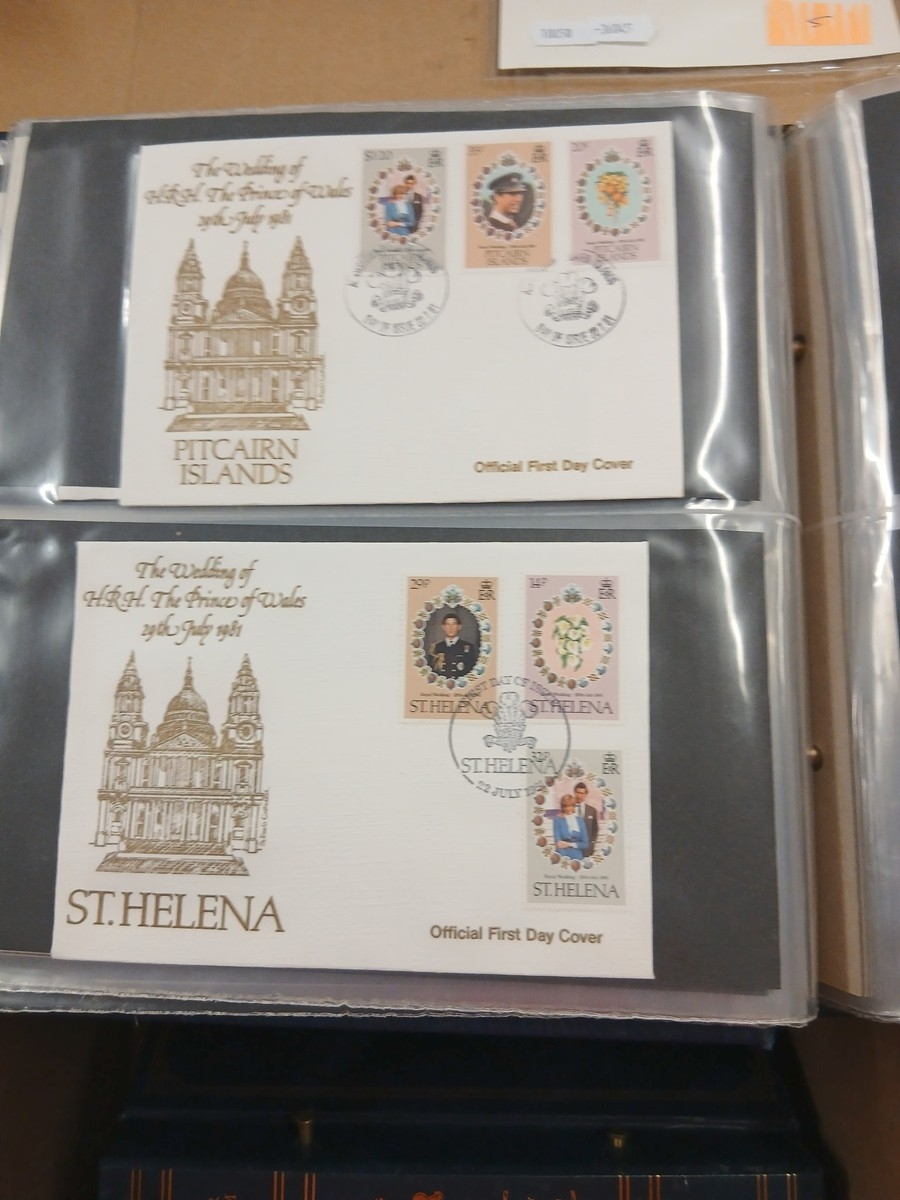 Stamps - WORLD Box of covers in 3 albums including 1978 and 1981 Omnibus issues. Packets with RHUDESIA S.W.A. and JAMAICA.
