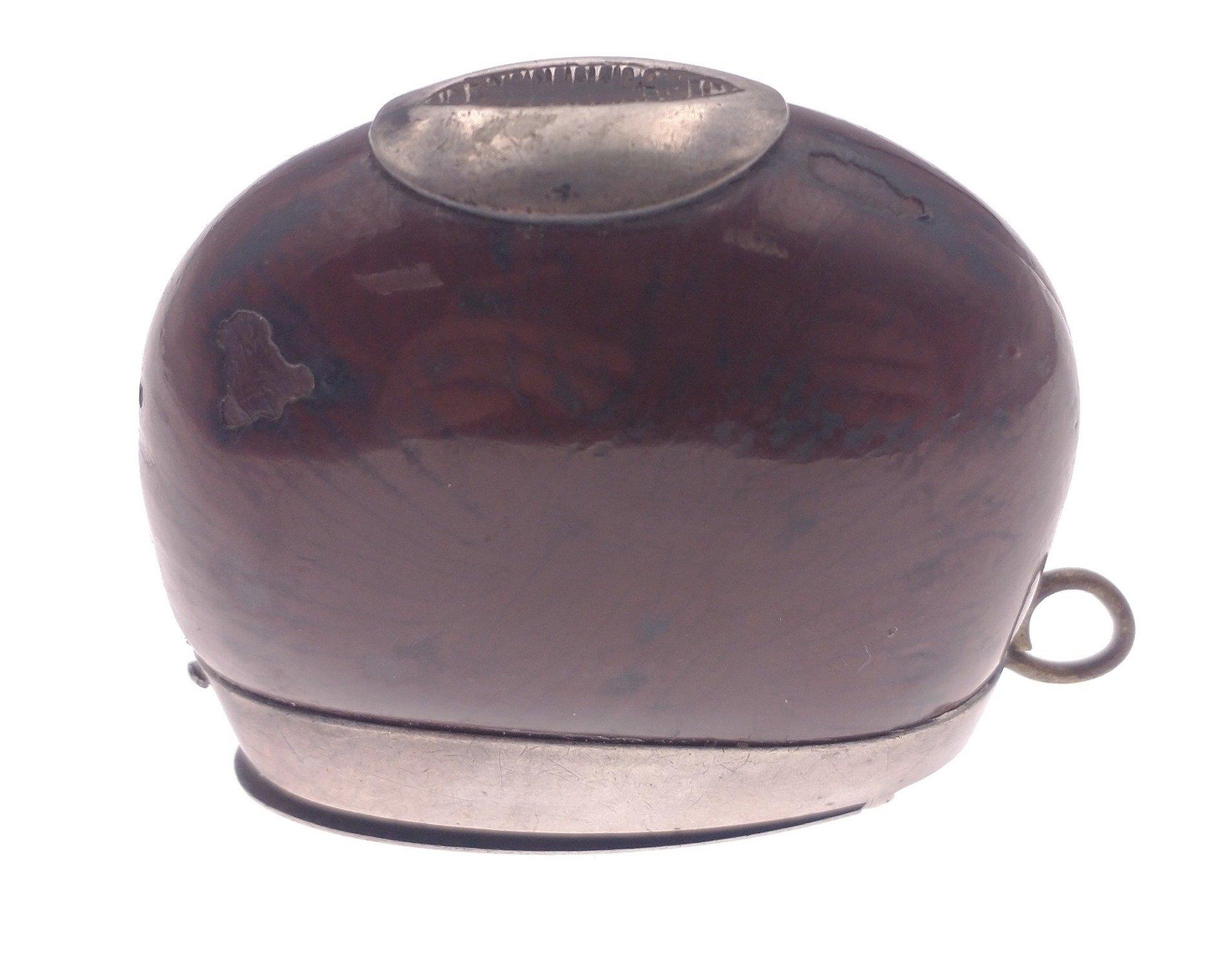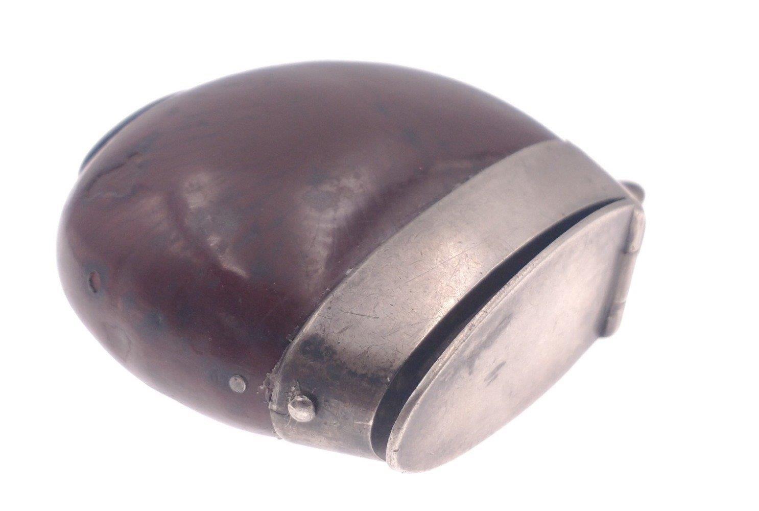 An ANTIQUE white metal bound small Vesta case bulbous shape 5cm x 4cm