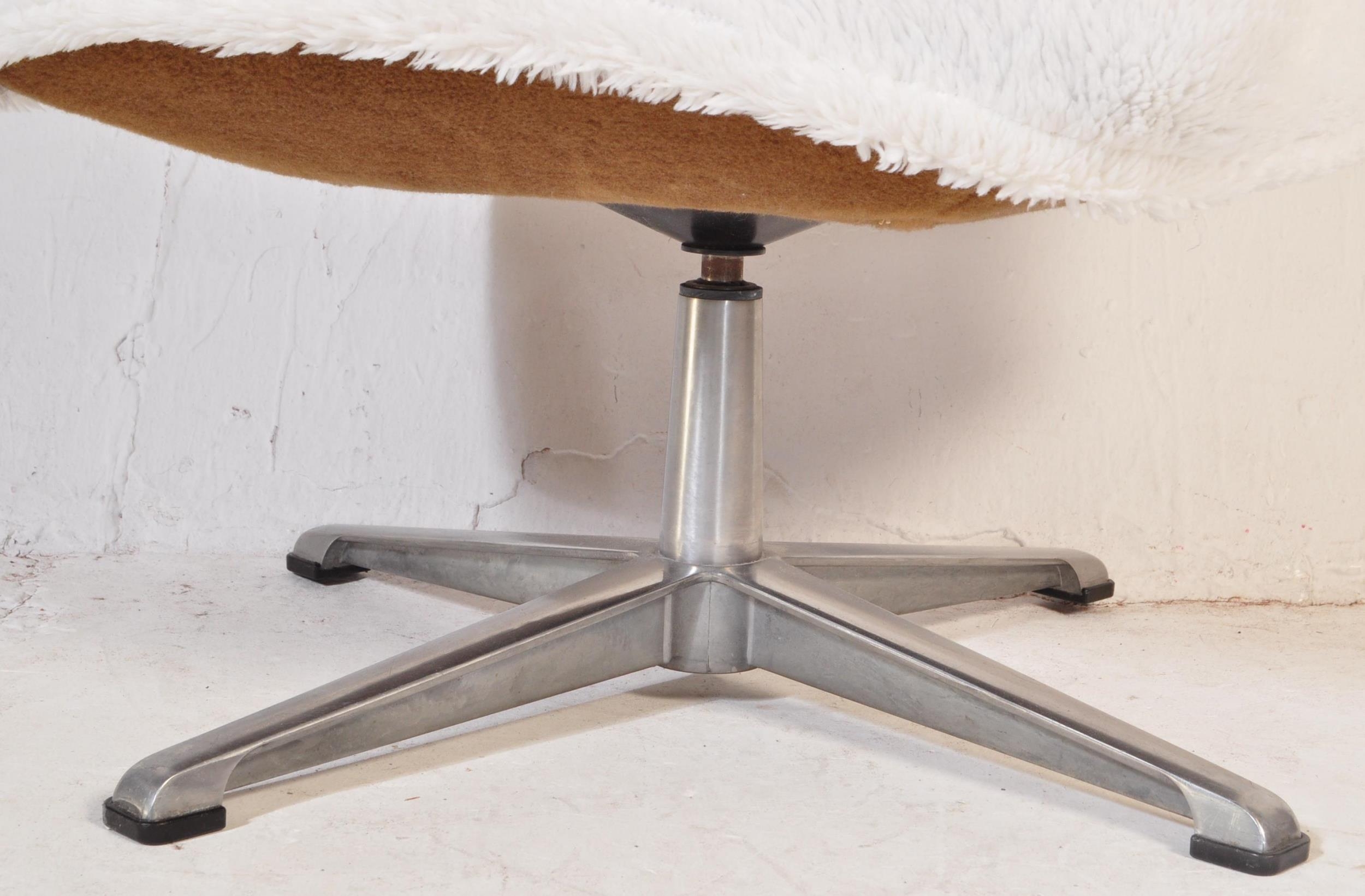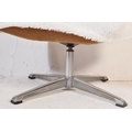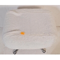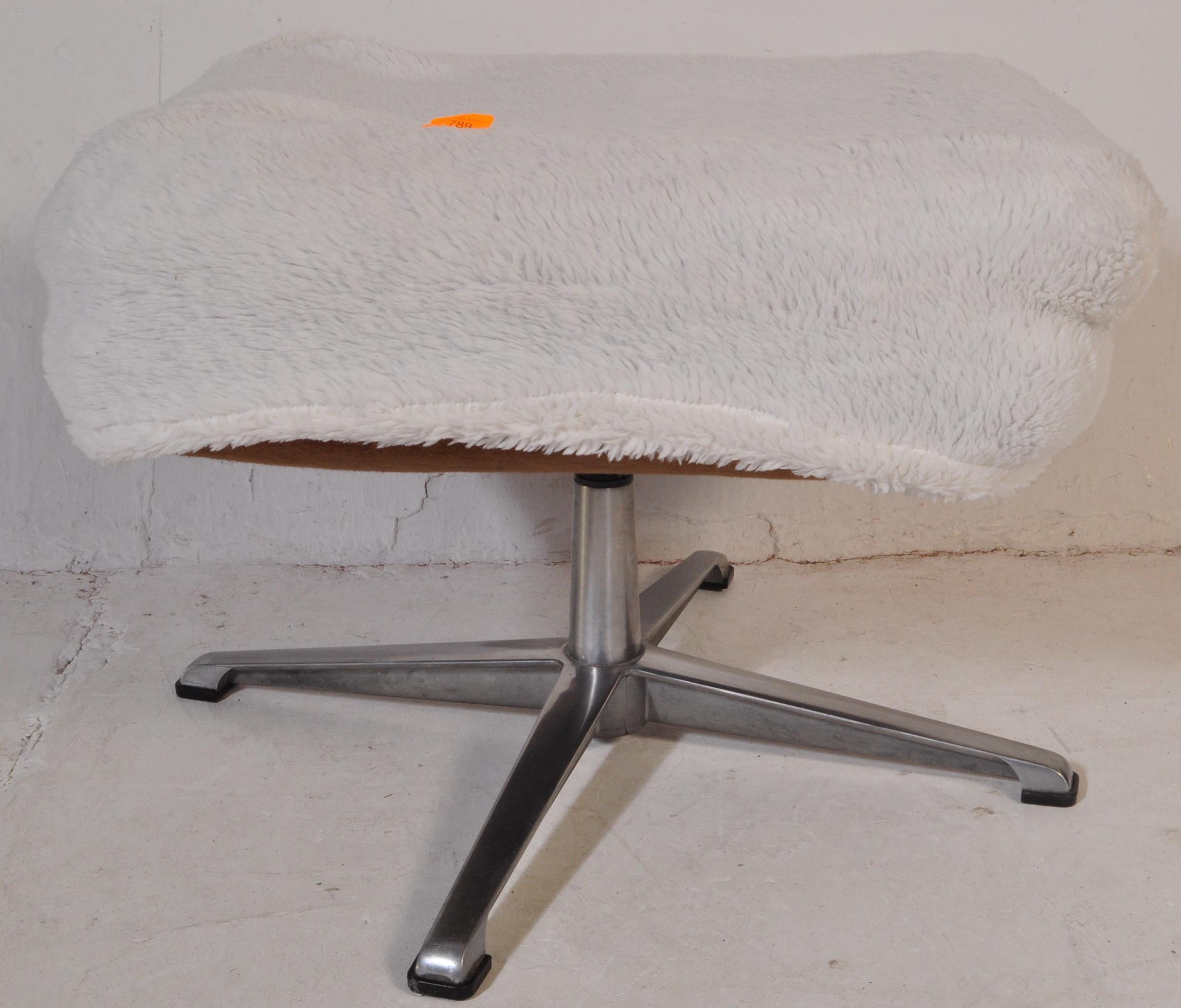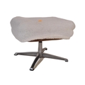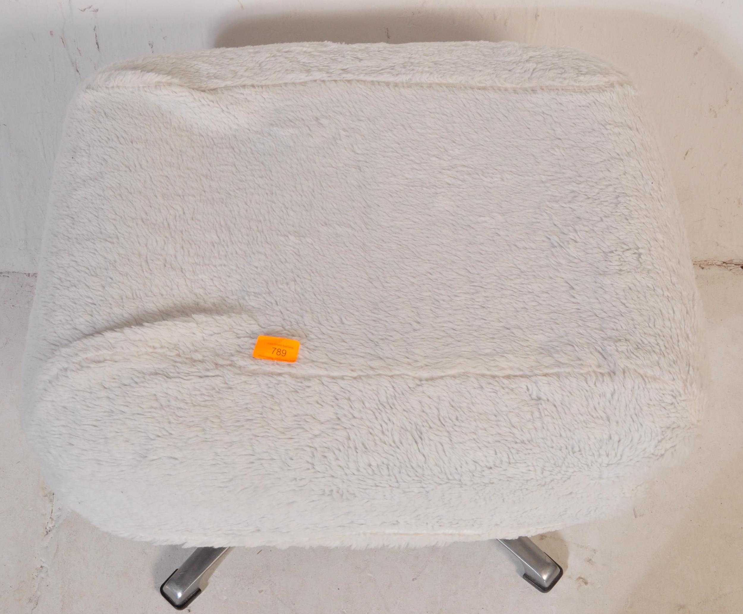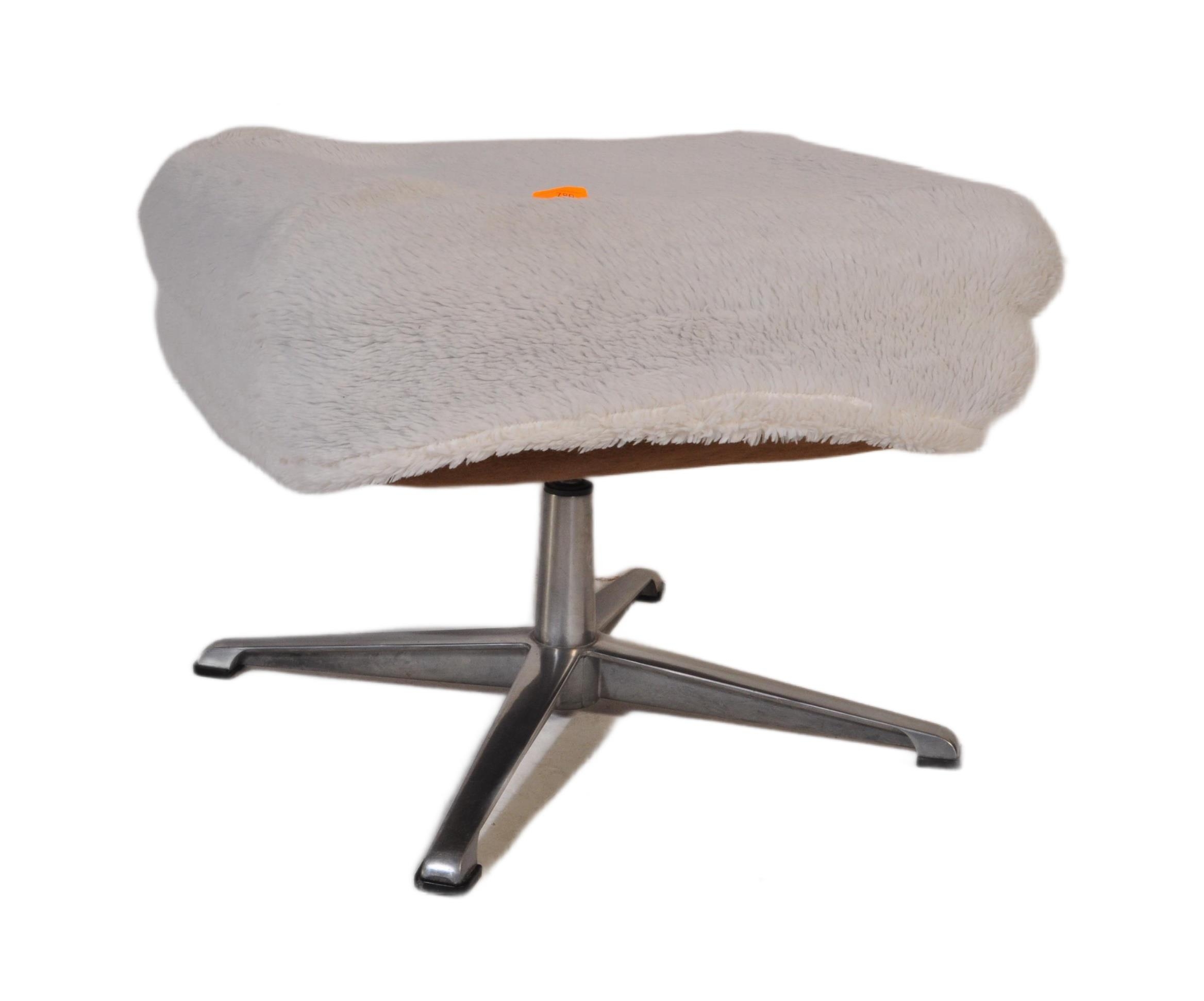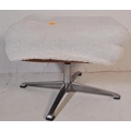 Retro mid-century fluffy upholstered ottoman swivel footstool - dressing table stool. Raised on a chrome metal four point base with upholstered overstuffed cube frame above having fluffy wool finish