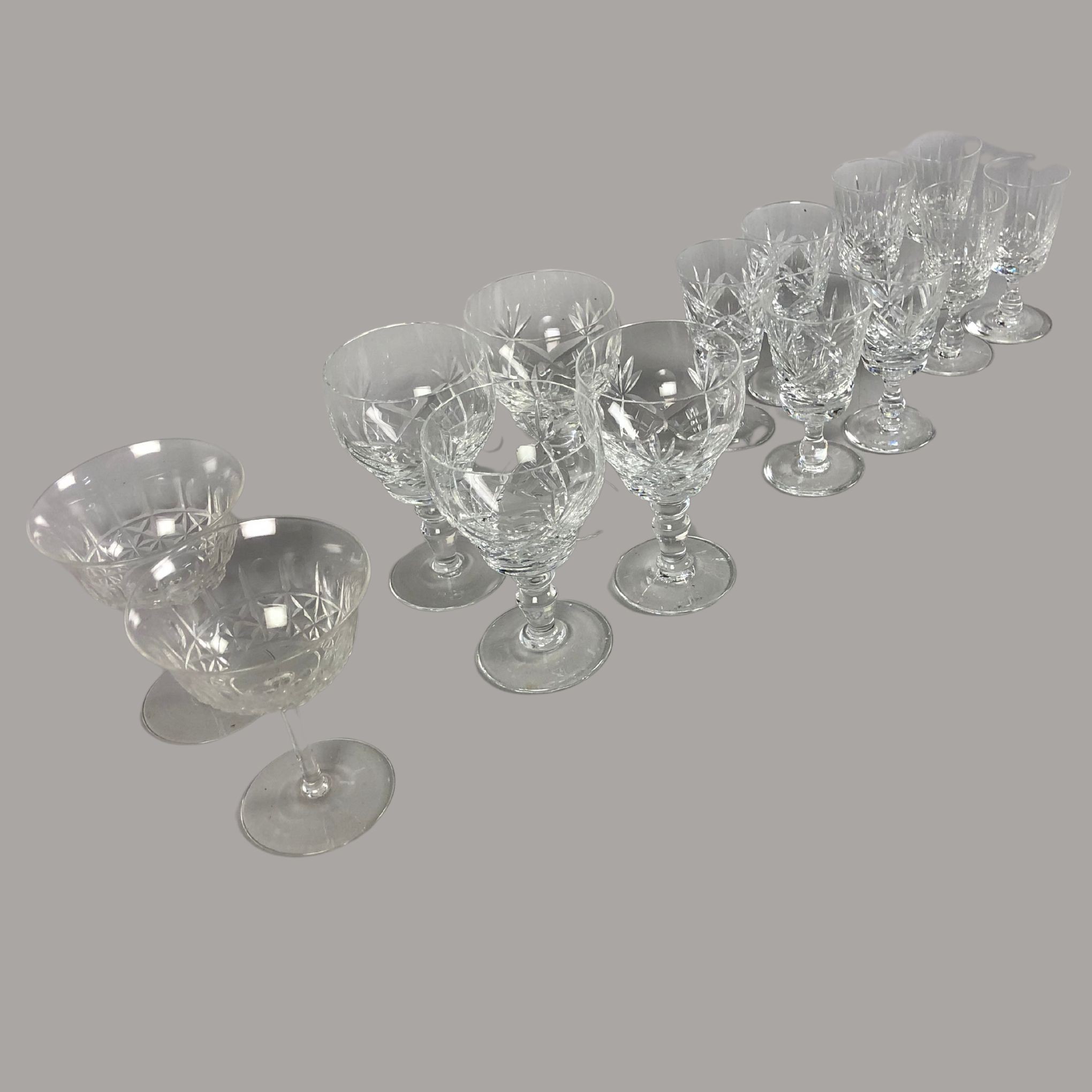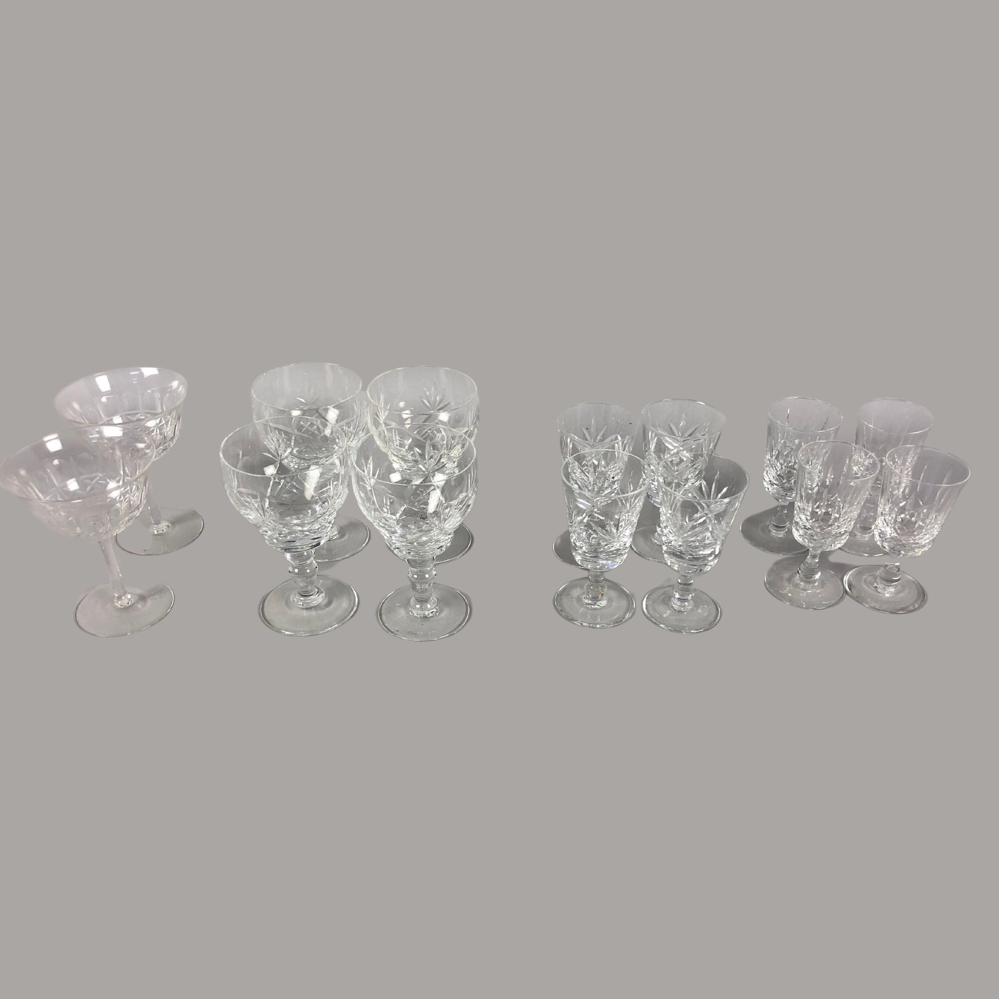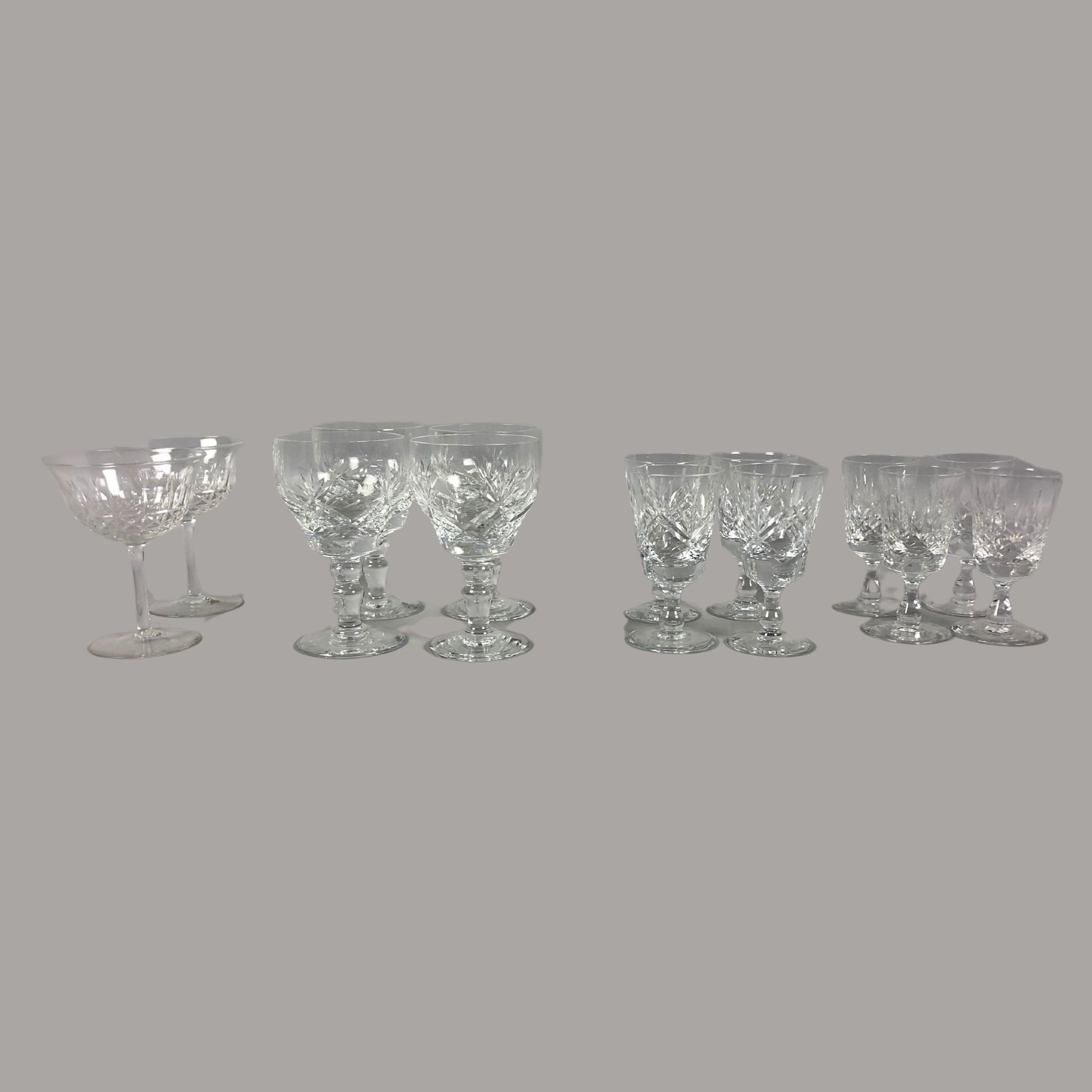 Champagne Coupes, Four Thomas Webb Crystal Cut Wine/Sherry Glasses & Four Appin Cut Edinburgh Crystal Dessert Wine Glasses and Vintage Royal Brierley Set of Four Glasses