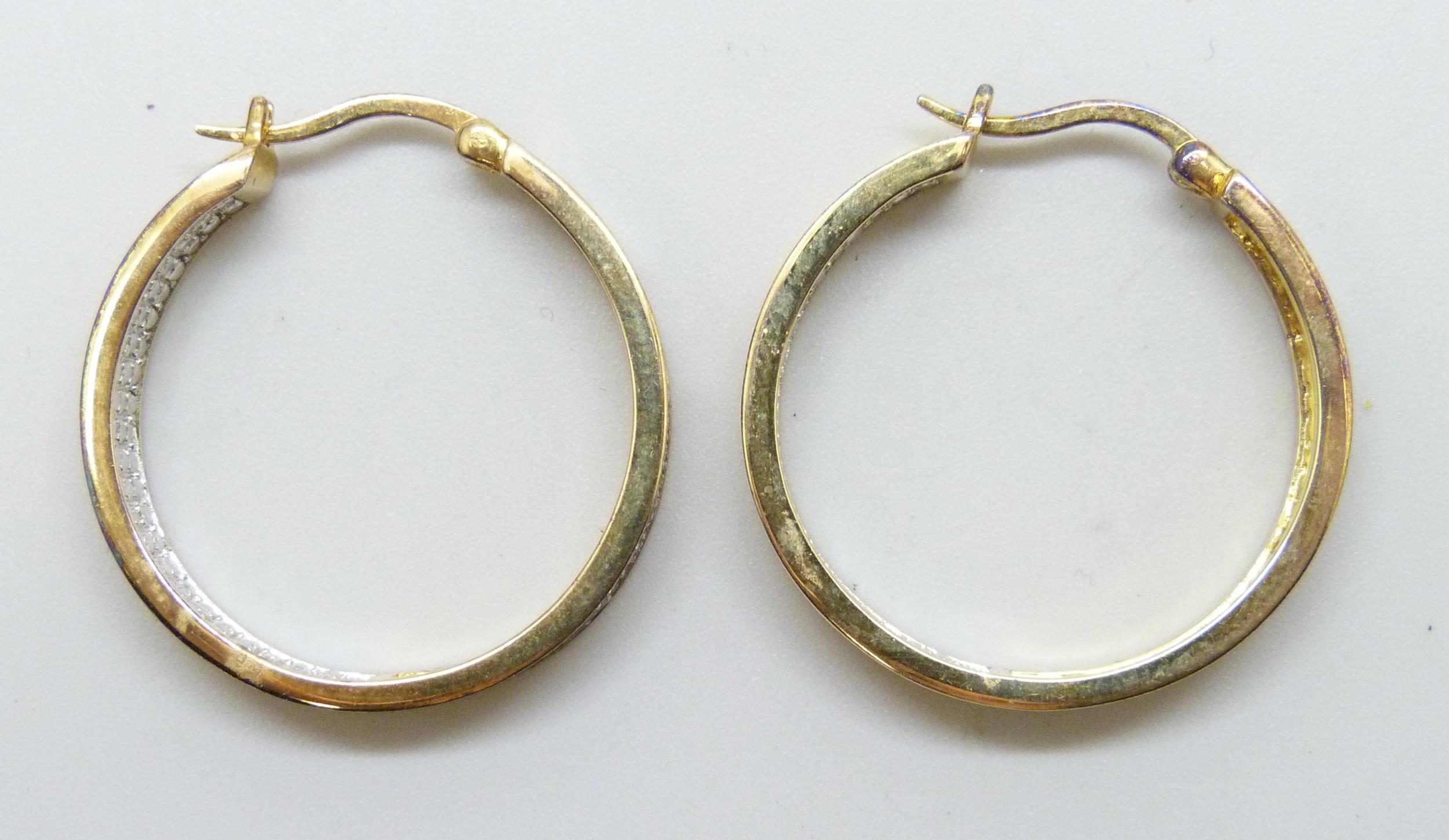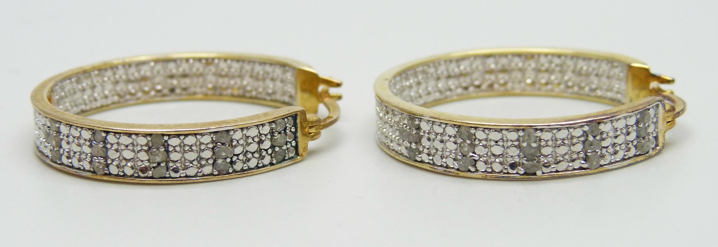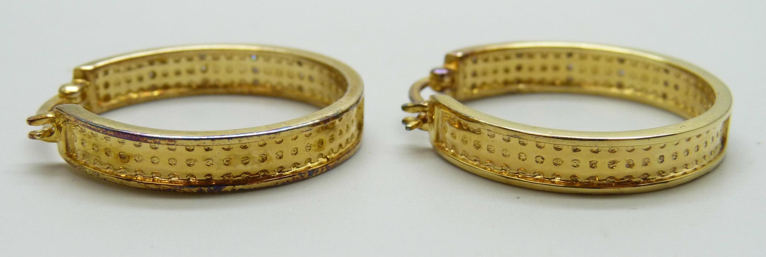 A pair of silver gilt diamond set hoop earrings, 2.6cm