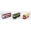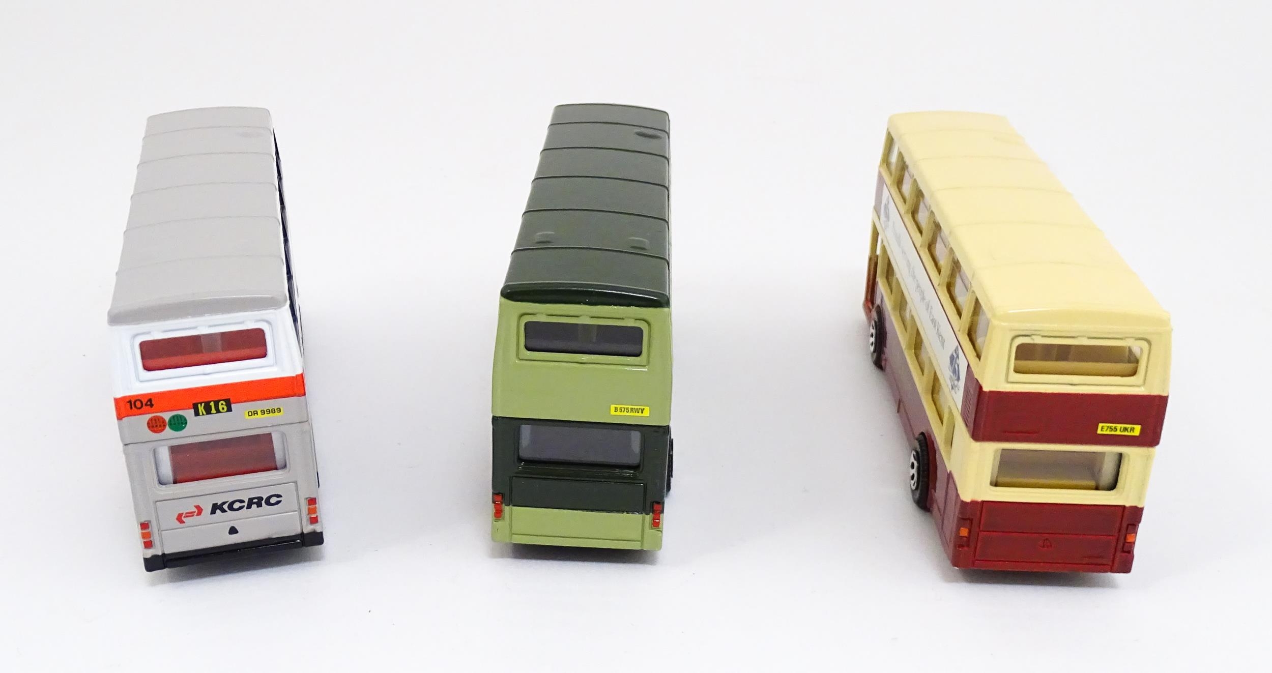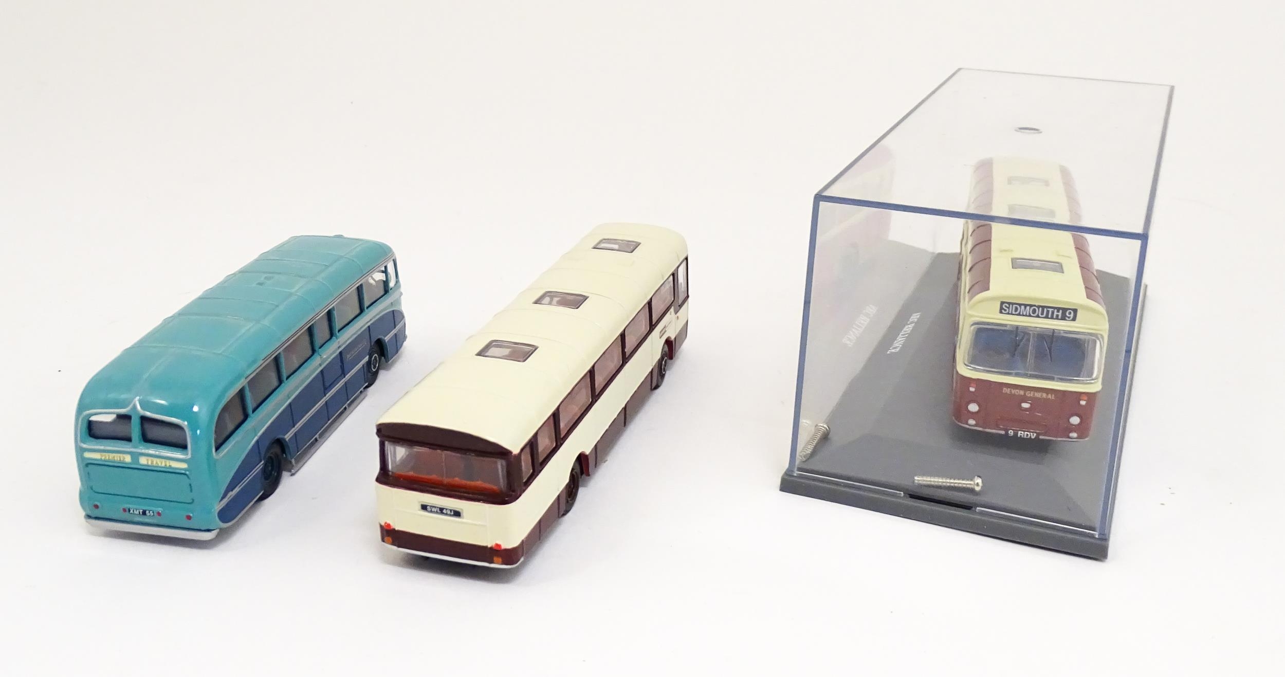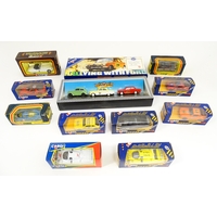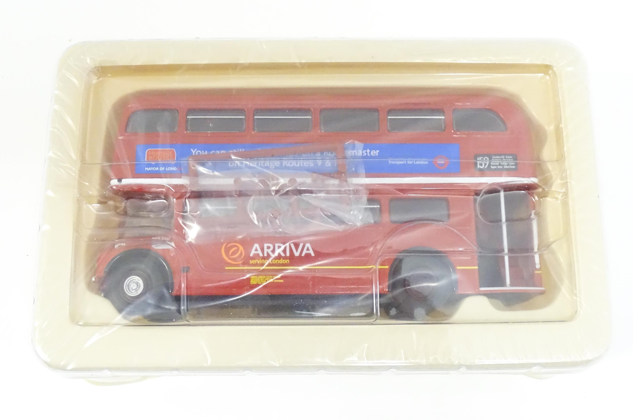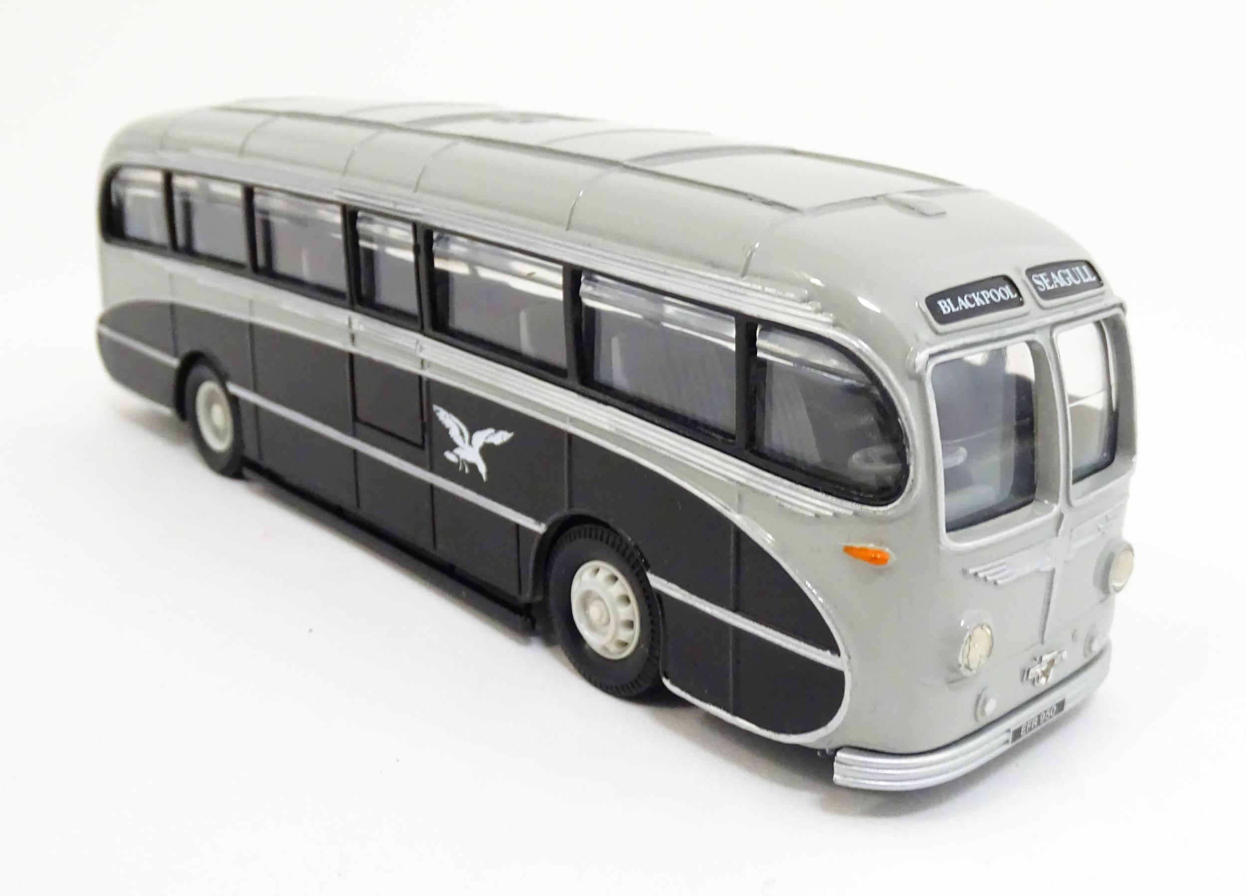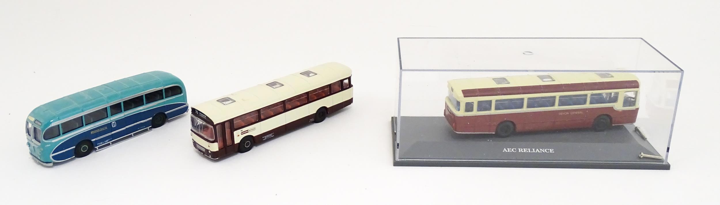 Toys: A quantity of boxed Corgi Toys die cast scale model buses / coaches comprising Corgi Classics Kowloon-Canton Railway Corporation Metrobus Double Decker Hong Kong, Burlingham Seagull Woods, 1916-1991 75 Years Service The Metrobus, The Varsity Set, AEC Routemaster, Yorkshire Rider, and AEC Reliance Devon General. (7)