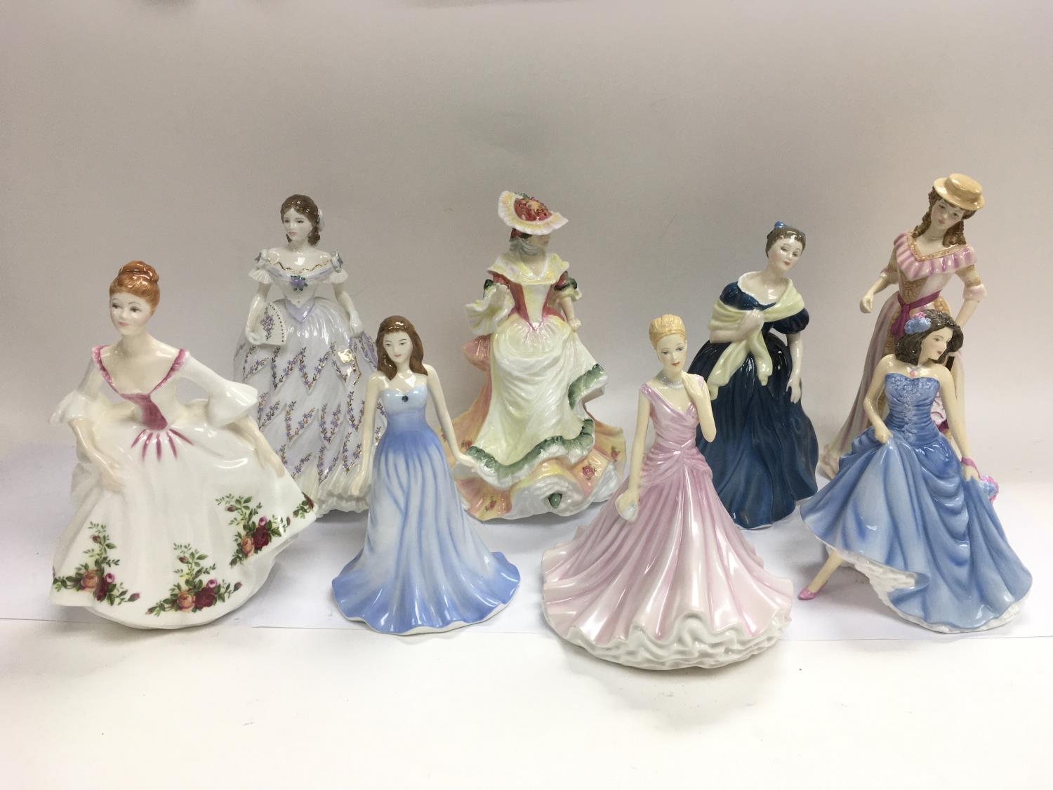 Eight Royal Doulton porcelain figurines. Unboxed.