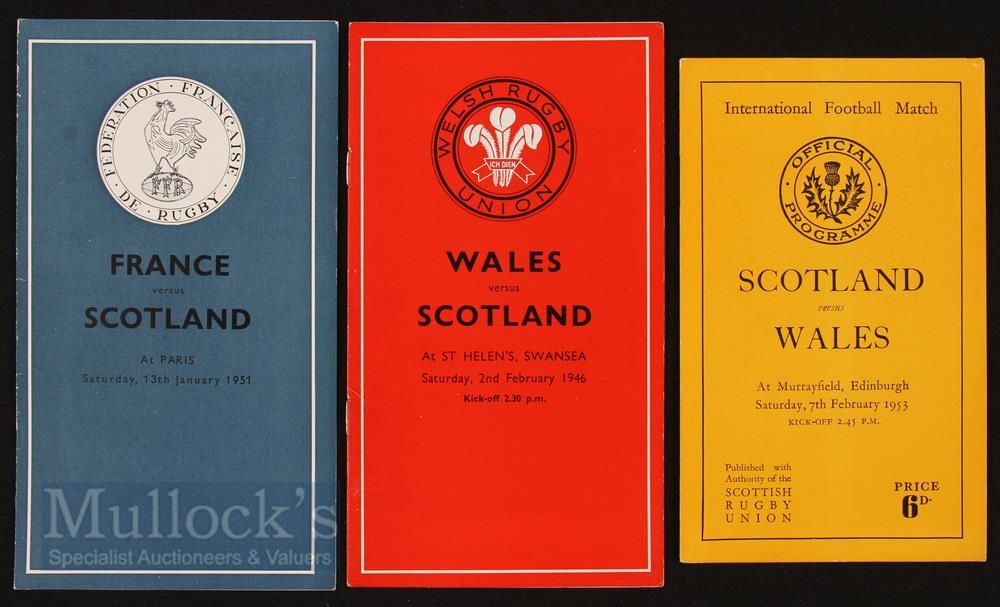 Scotland Doublers Rugby Programmes B (3): Spare copies of those listed in earlier lots, the issues v Wales 1953 and the later binder efforts imagined for Wales and for France v Scotland, 1946 & 1951 respectively (all near mint)