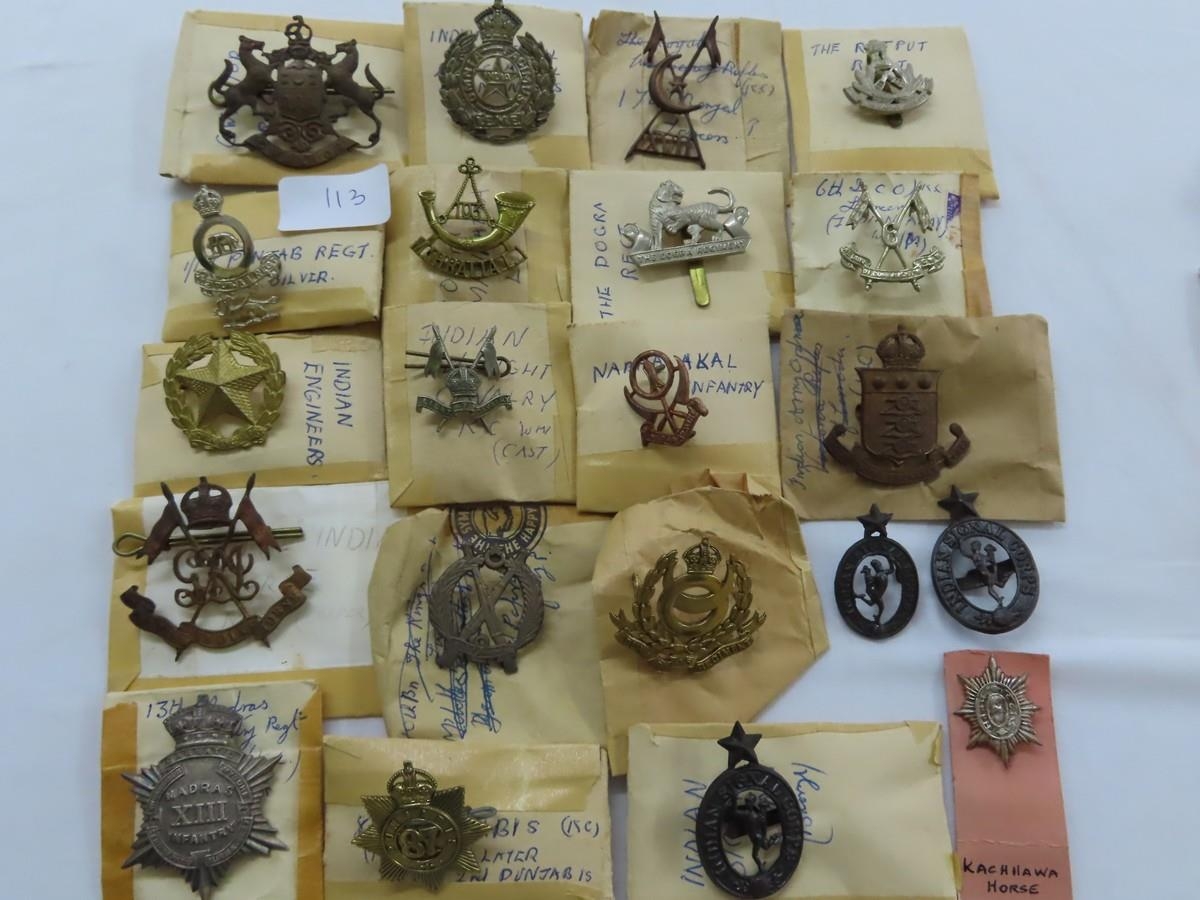 Twenty-one WWI / WWII Indian regimental cap badges