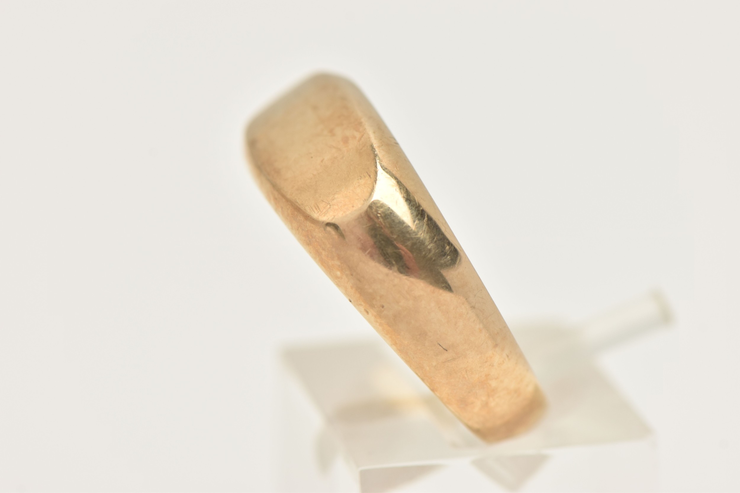 A GENTS 9CT GOLD SIGNET RING, polished design, hallmarked 9ct Sheffield, ring size S 1/2 leading edge, approximate gross weight 4.3 grams (condition report: general light wear)