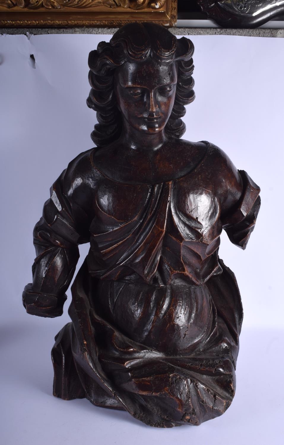 AN 18TH/19TH CENTURY CONTINENTAL CARVED OAK FIGURE possibly a figure head from a ship. 75 cm x 48 cm wide.