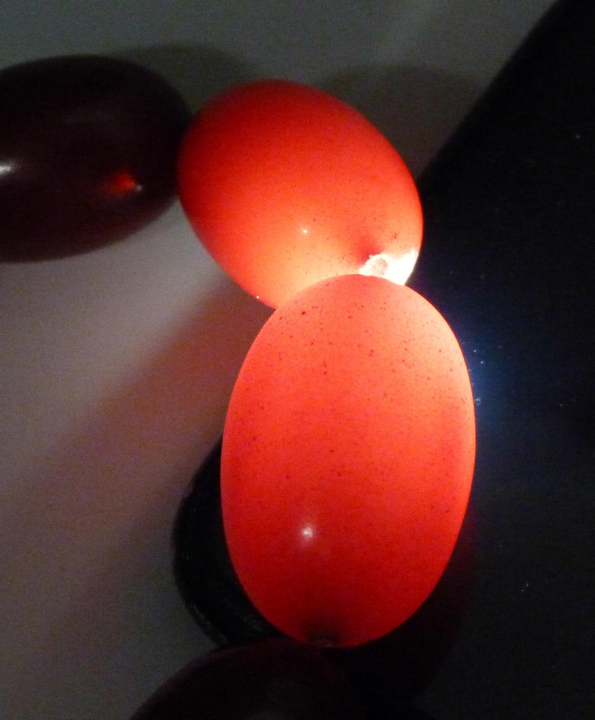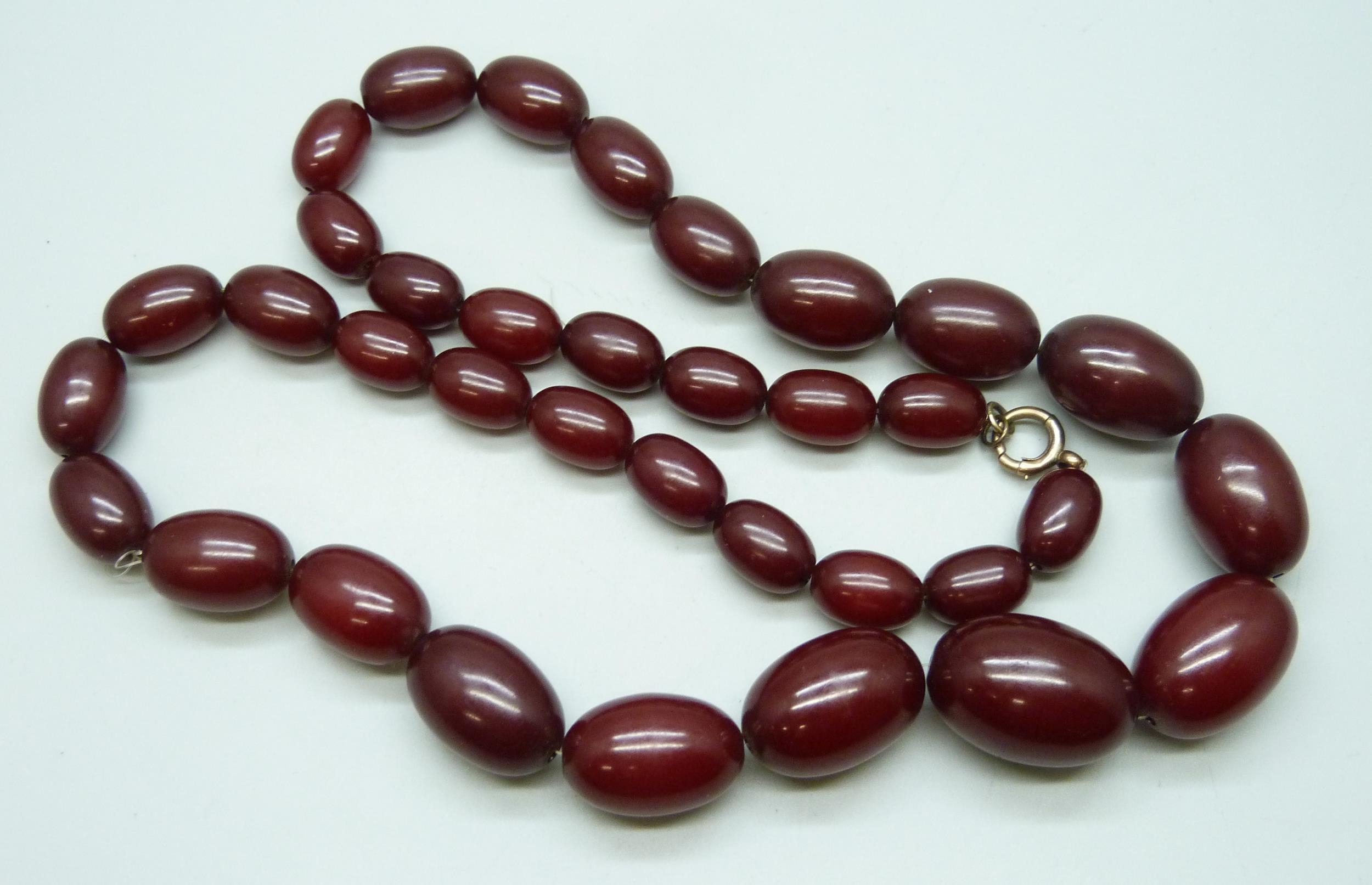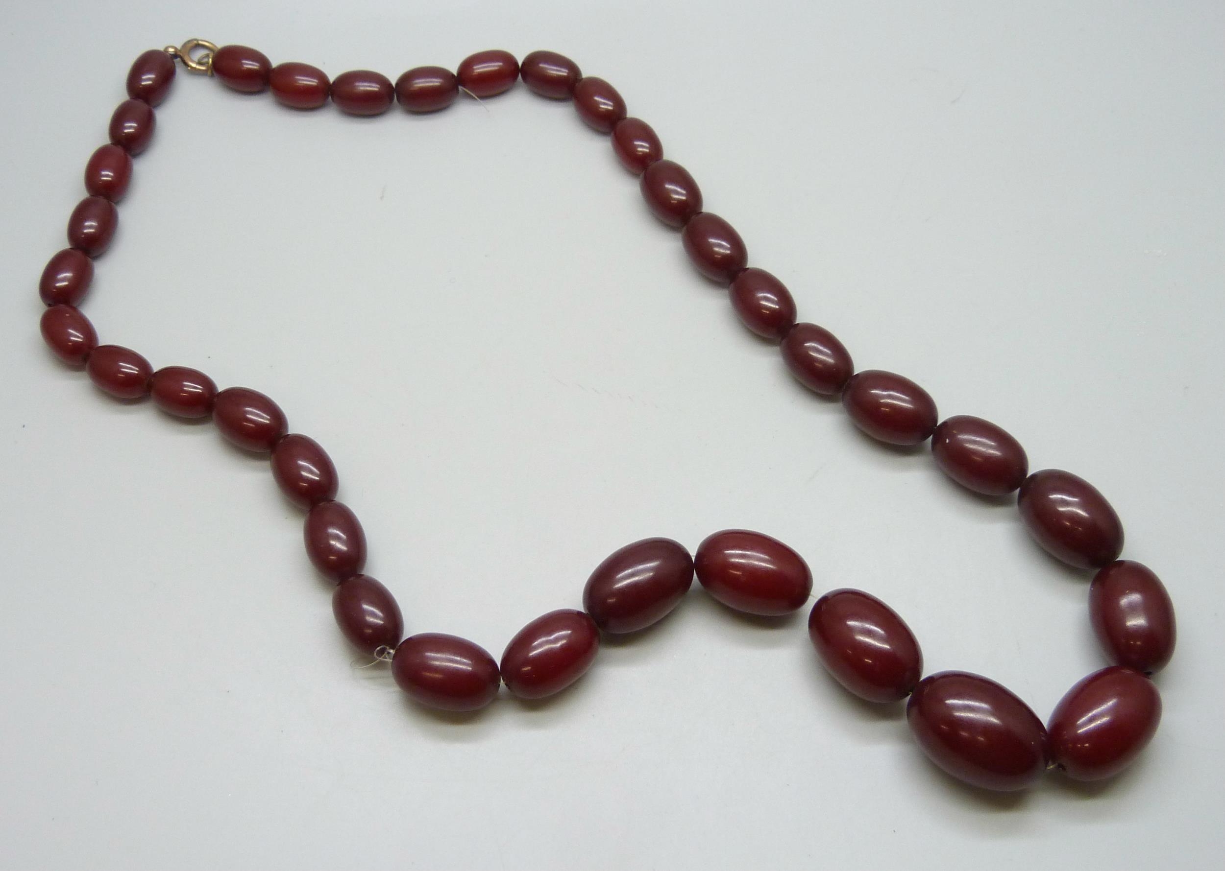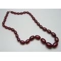 A string of cherry amber coloured Bakelite beads, 100g, largest bead 2.8cm