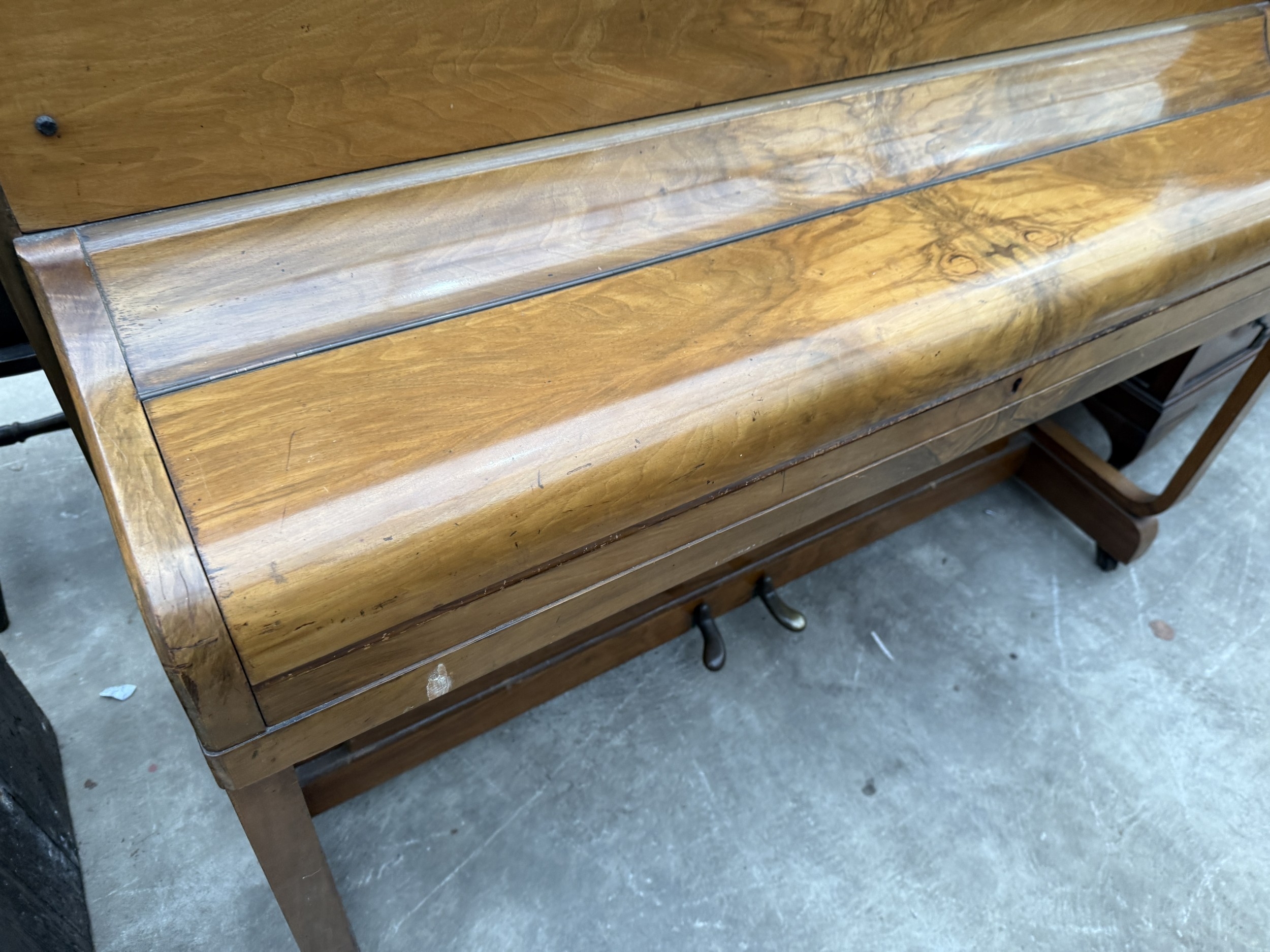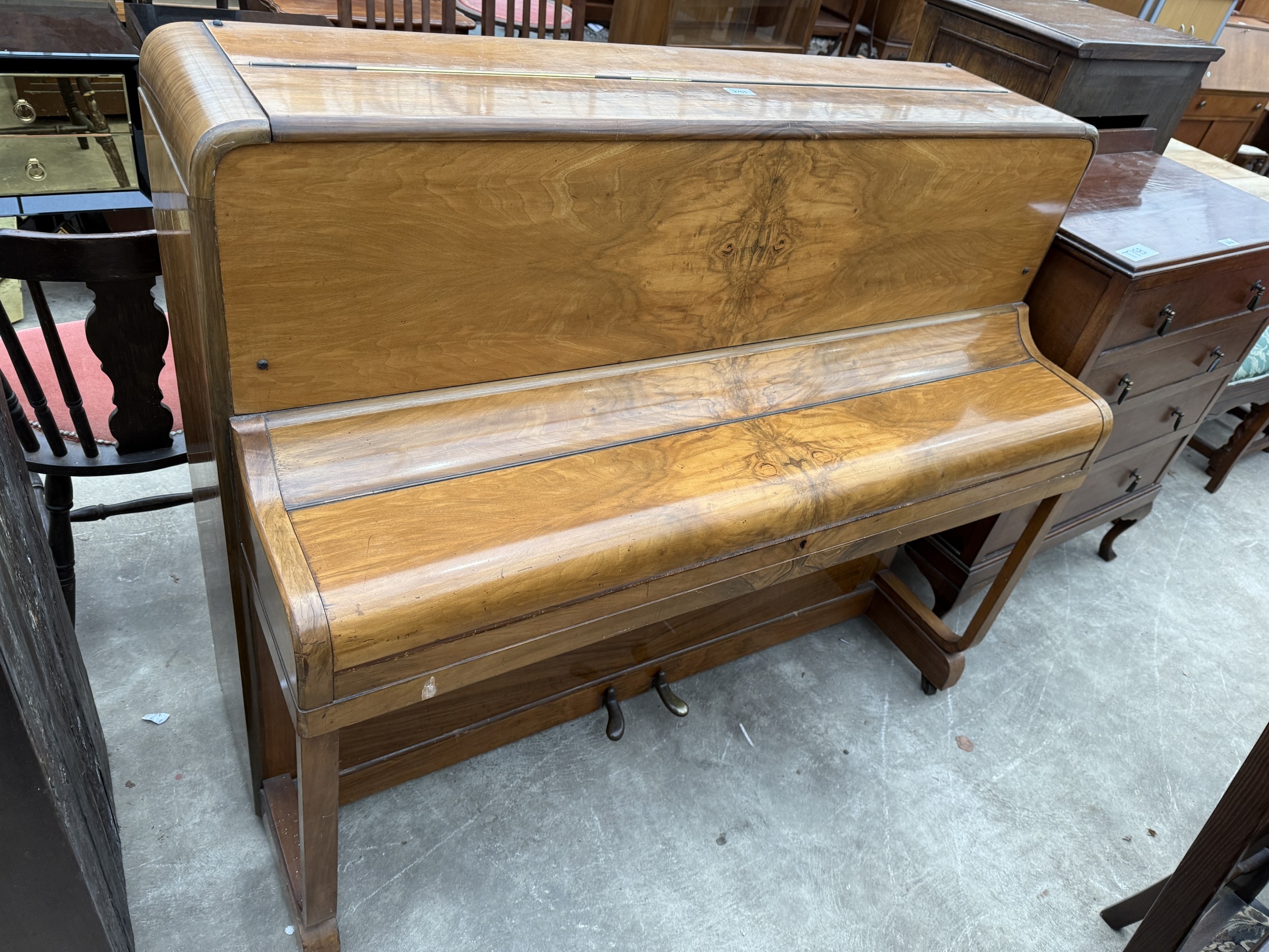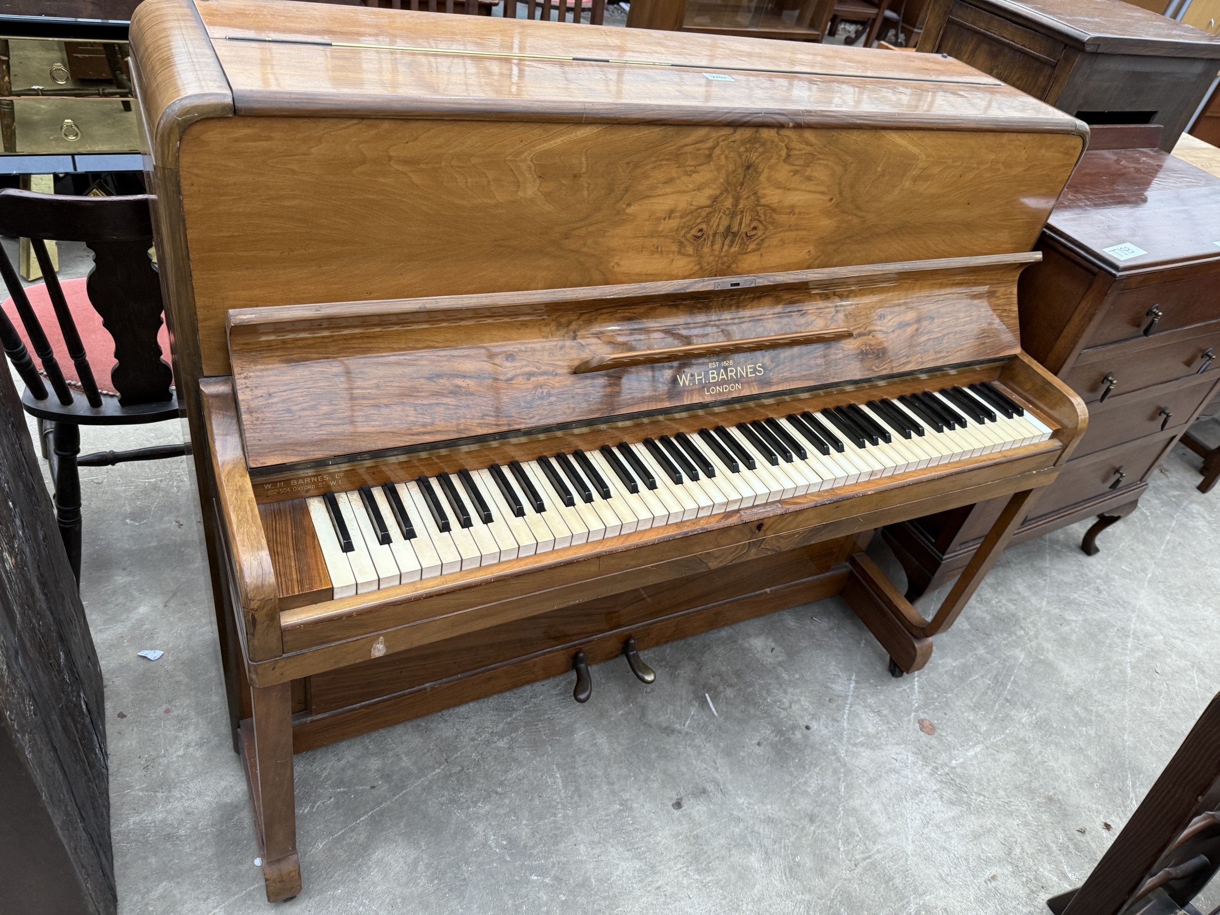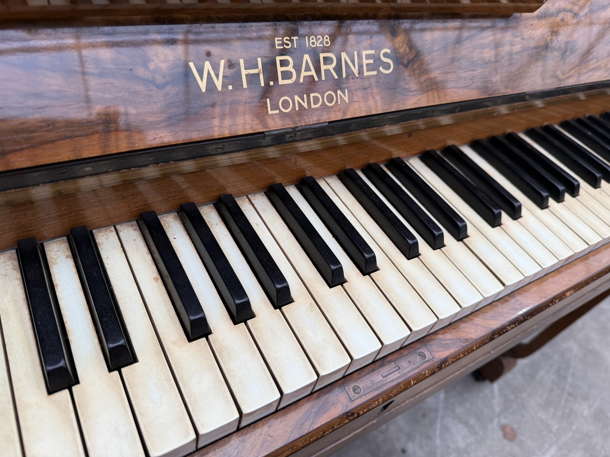 A WALNUT OVERSTRUNG PIANO, W.H. BARNES, LONDON