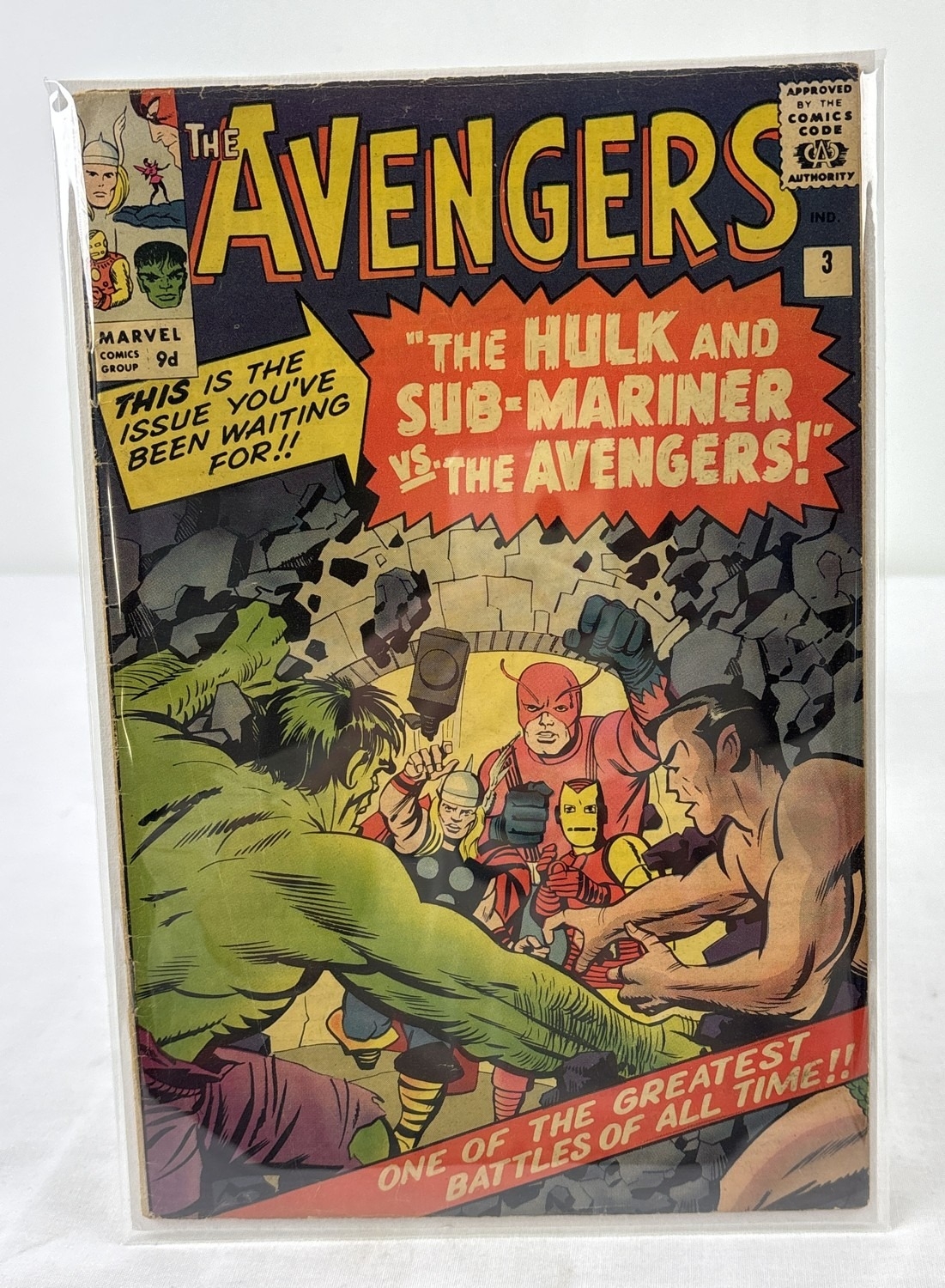 The Avengers #3 "The Hulk and Sub-Mariner Vs The Avengers!" from Marvel Comics, Jan 1964. Bagged & boarded.