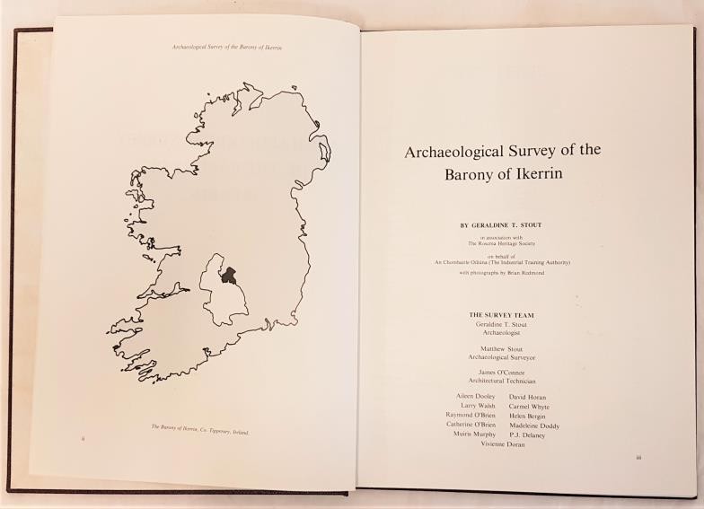 Stout, Archaeological Survey of Ikerring (Roscrea 1984). One of ten copies specially bound for presentation by Antiquarian Bookcraft (with their ticket). (1)