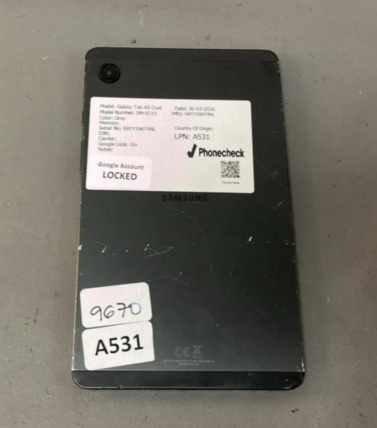 SAMSUNG GALAXY TAB A9 DUAL/ SM-X110/ GRAY/ GOOGLE LOCKED/ IMEI: R8YY306T4NL - SCREEN DAMAGED