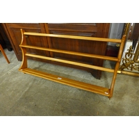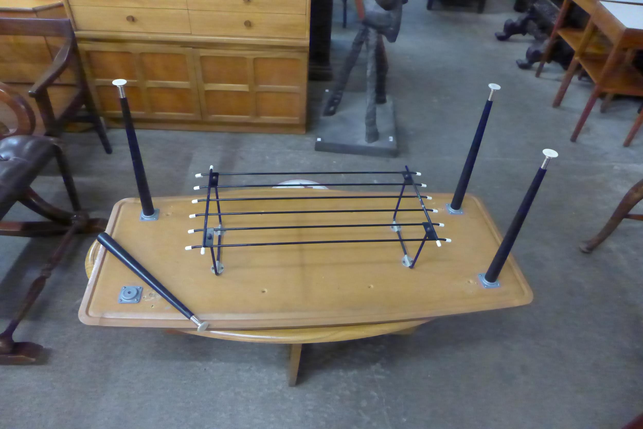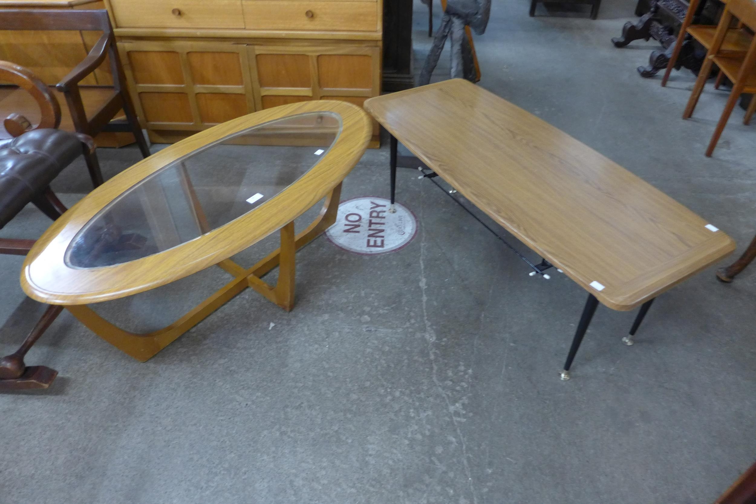A teak and glass topped oval coffee table and a Formica coffee table