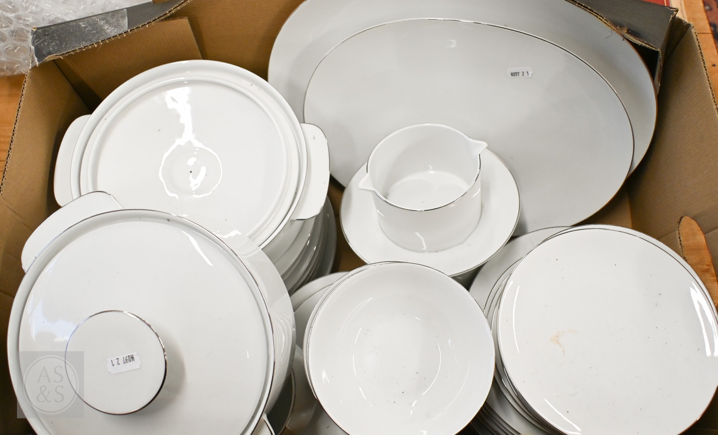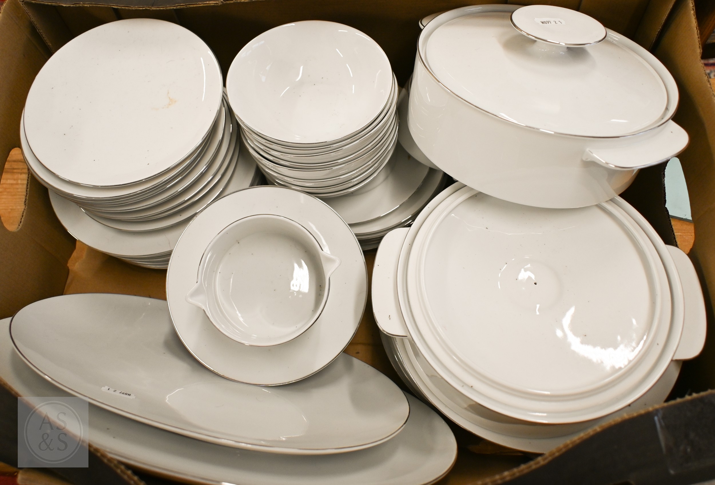 A Thomas (Germany) white-glazed dinner service with silvered rims (box)