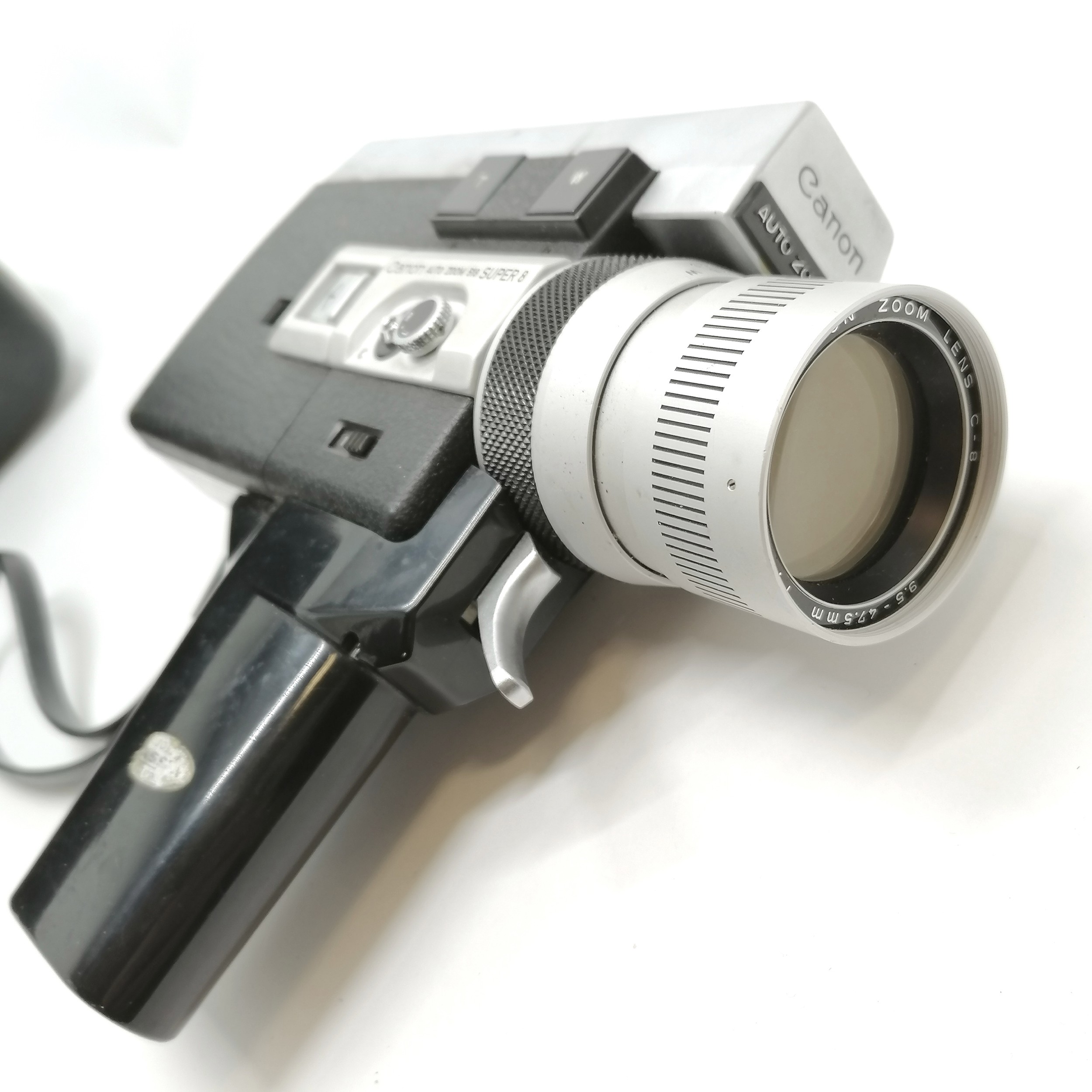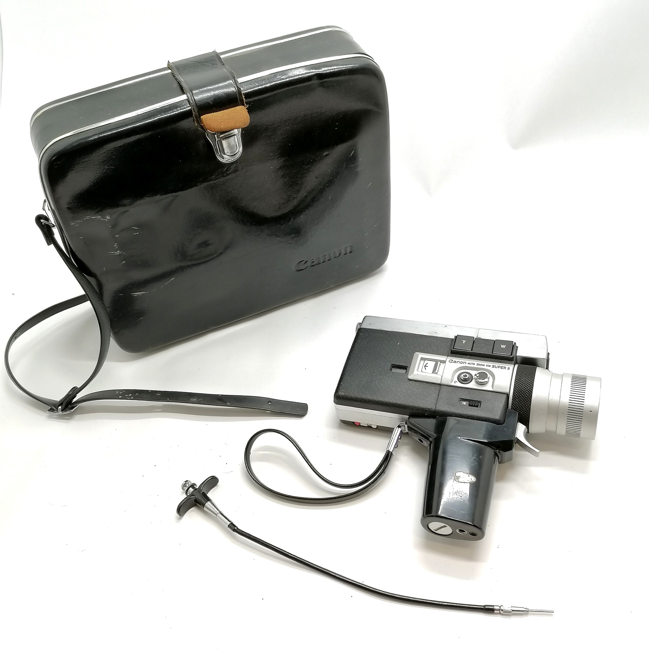 Canon Auto Zoom 518 Super 8 cine camera in original black leather case - has some wear to the case