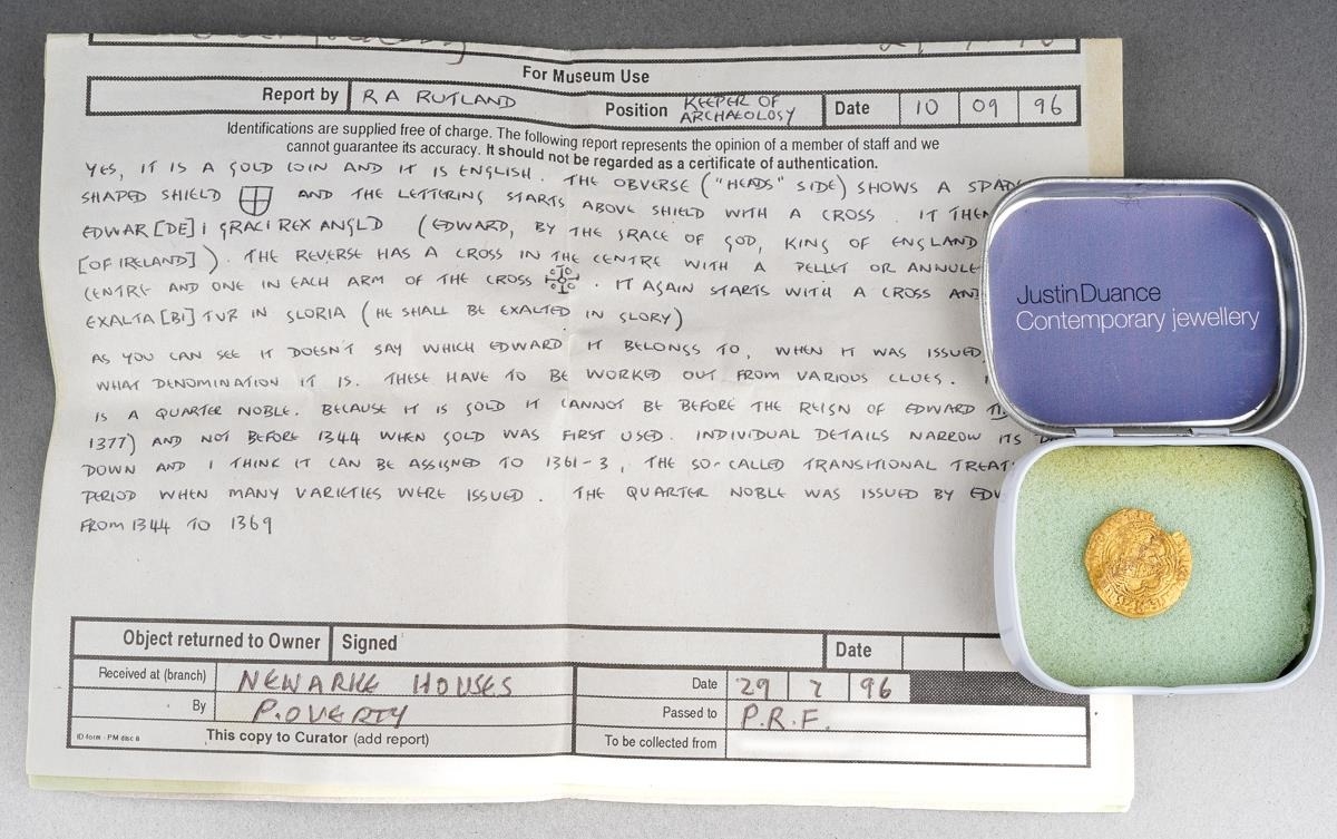 Edward third gold quarter noble coin, 1.88 grams approx - 20mm diameter approx
